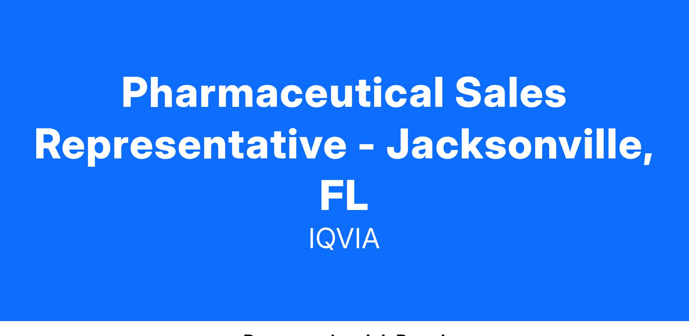 Pharmaceutical Sales Representative - Jacksonville, FL
