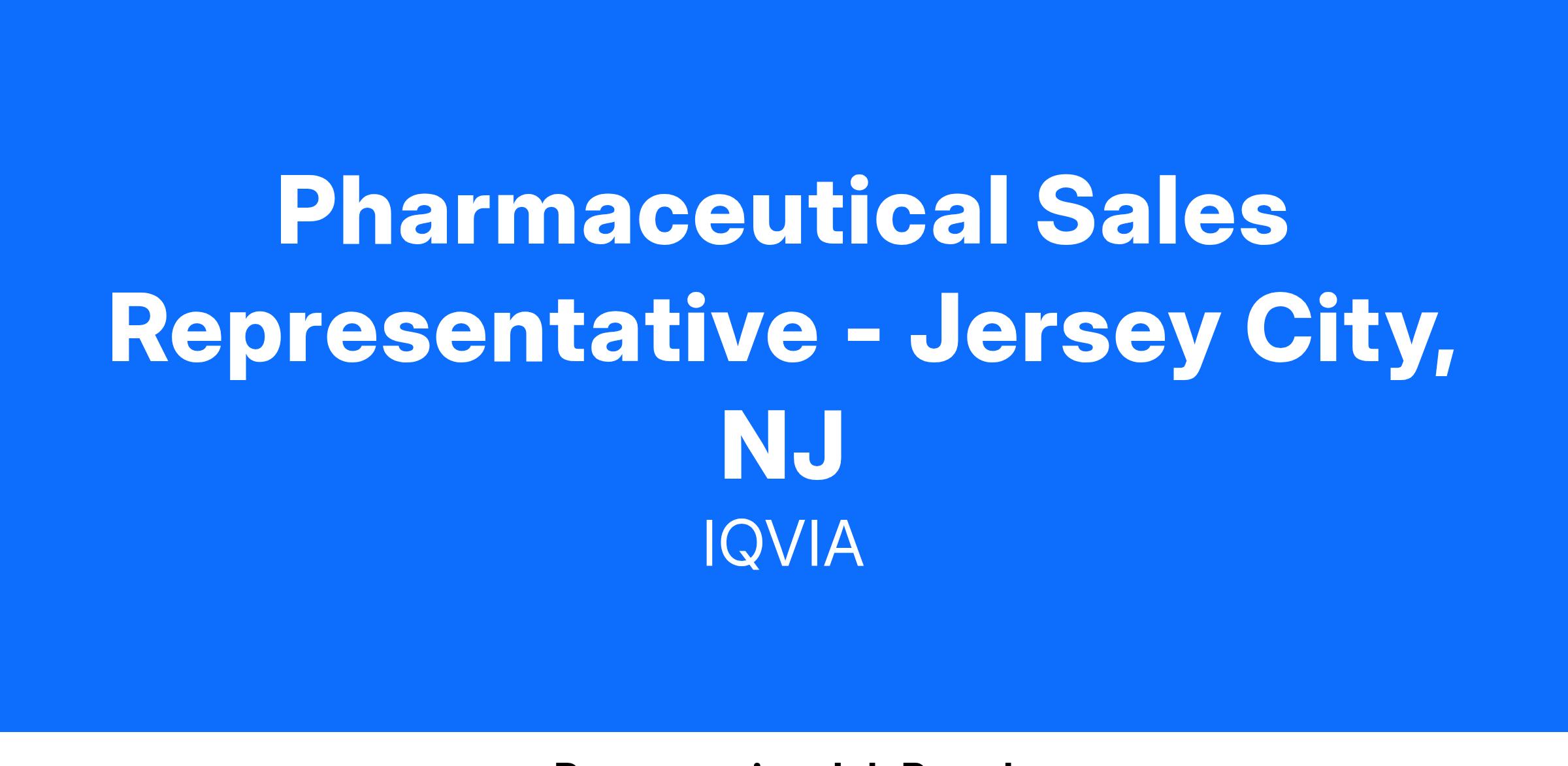 Pharmaceutical Sales Representative - Jersey City, NJ
