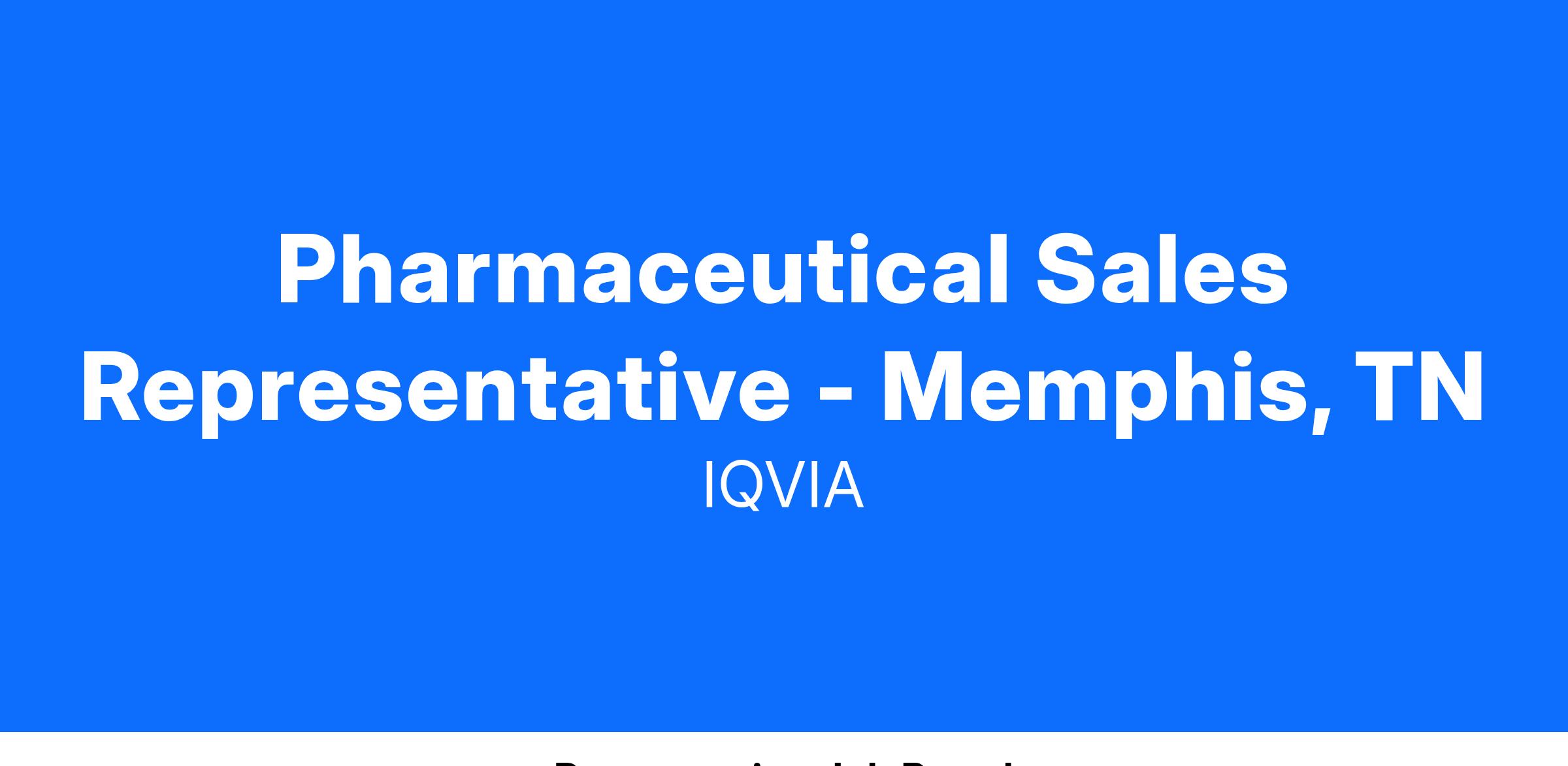 Pharmaceutical Sales Representative - Memphis, TN