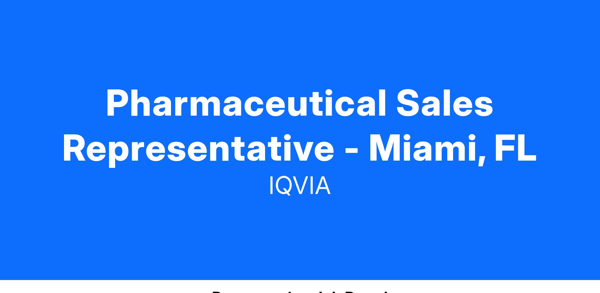 Pharmaceutical Sales Representative - Miami, FL