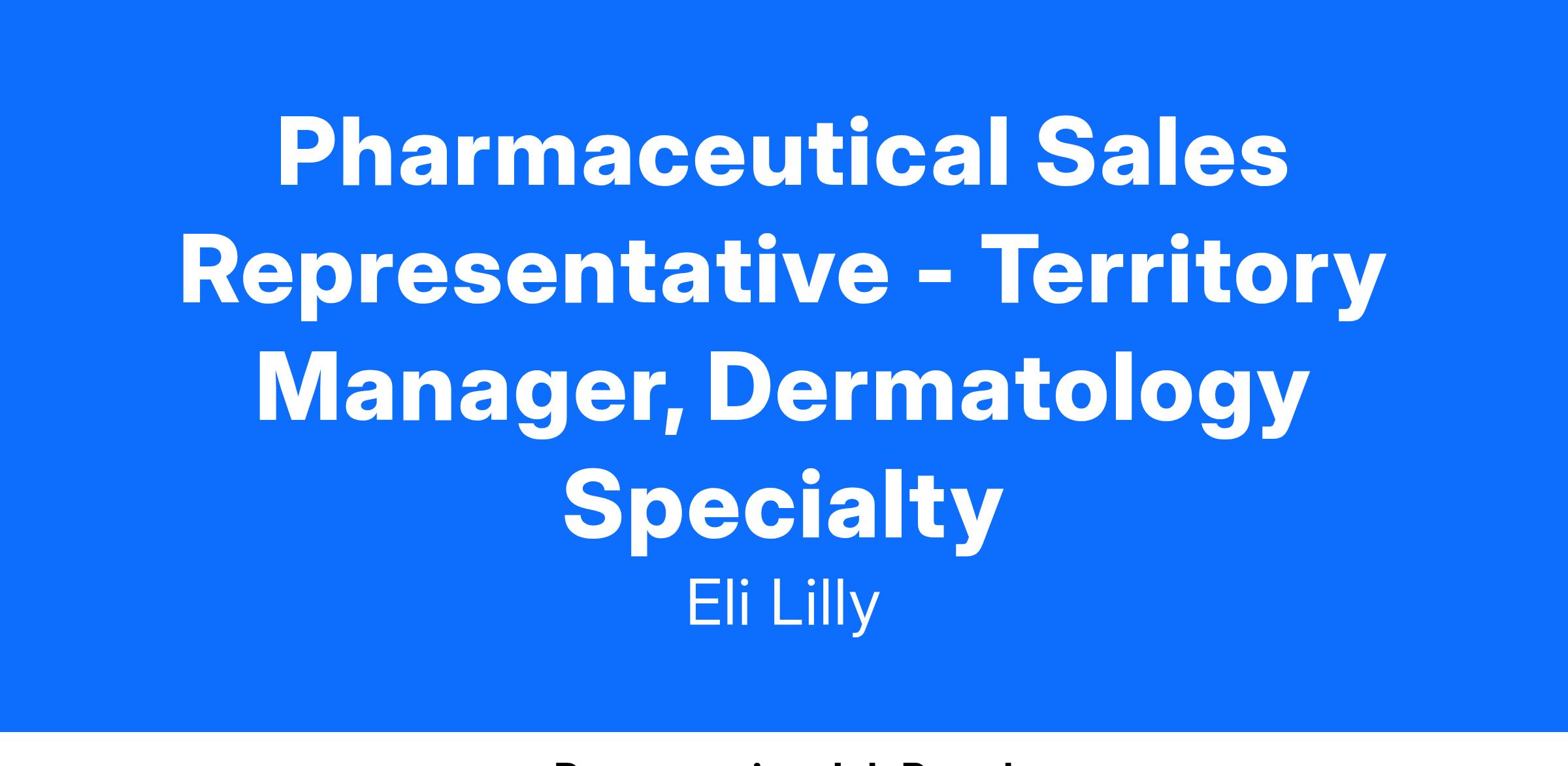 The Lilly Dermatology Specialty Territory Managers will be responsible for account-based selling to health care providers (HCPs) who prescribe and influence the treatment for the disease states represented in the Lilly dermatology portfolio. This includes HCPs in dedicated dermatology practices, as well as representatives in key hospital accounts, including dermatologists, dermatology fellows, dermatology educators, chief internal medicine residents, chief family practice residents and residents involved in dermatology rotations. You will build relationships with key customers in the dermatology space to increase Lilly’s ability to drive adoption of our new and existing therapies. They will also identify and develop business relationships with state and local advocacy groups, teaching institutions, key influencers, and managed care organizations. They will be viewed as a credible expert and resource.
