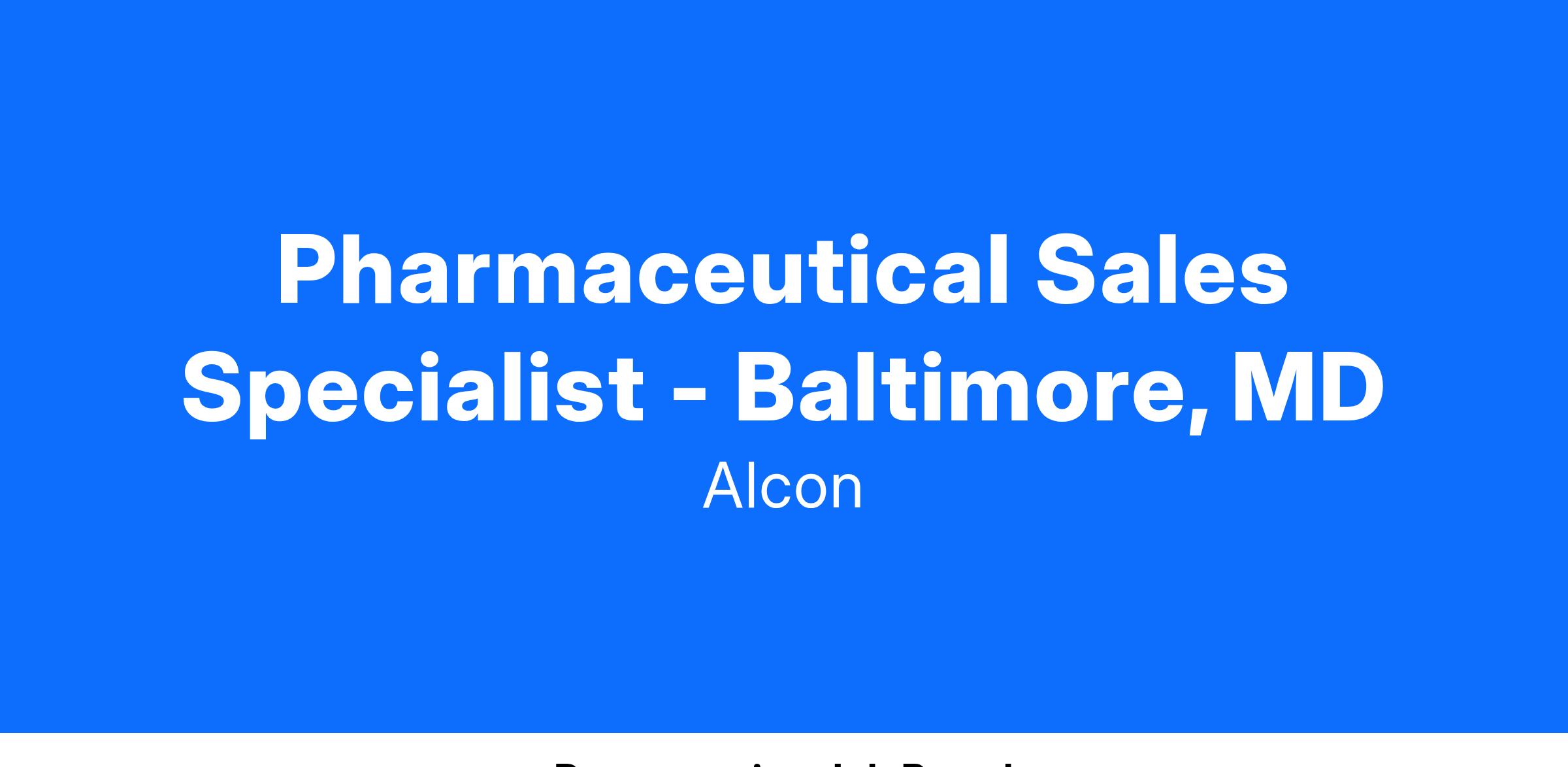 We foster an inclusive culture and are looking for diverse, talented people to join Alcon. As a Sr. Associate, Pharmaceutical Sales one will be responsible for covering a large territory and will focus on a defined target list of physicians/practitioners within the territory. One will also assure the needs of all partners are met within compliance guidelines while developing relationships and maintaining an active presence in the pharmaceutical community or associated organizations throughout the territory area of Baltimore, MD.