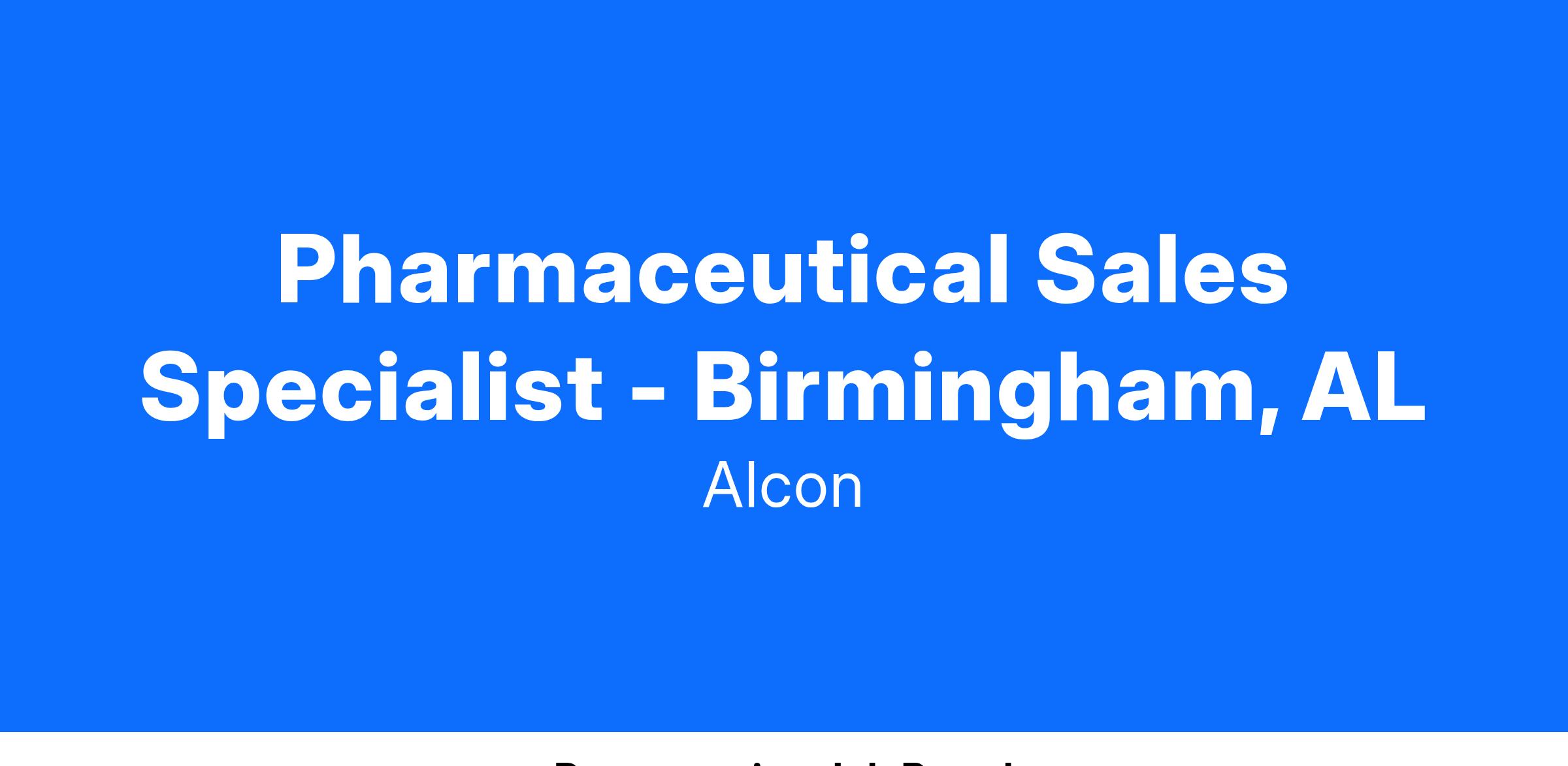 We foster an inclusive culture and are looking for diverse, talented people to join Alcon. As a Sr. Associate, Pharmaceutical Sales one will be responsible for covering a large territory and will focus on a defined target list of physicians/practitioners within the territory. One will also assure the needs of all partners are met within compliance guidelines while developing relationships and maintaining an active presence in the pharmaceutical community or associated organizations throughout the territory area of Birmingham, AL.