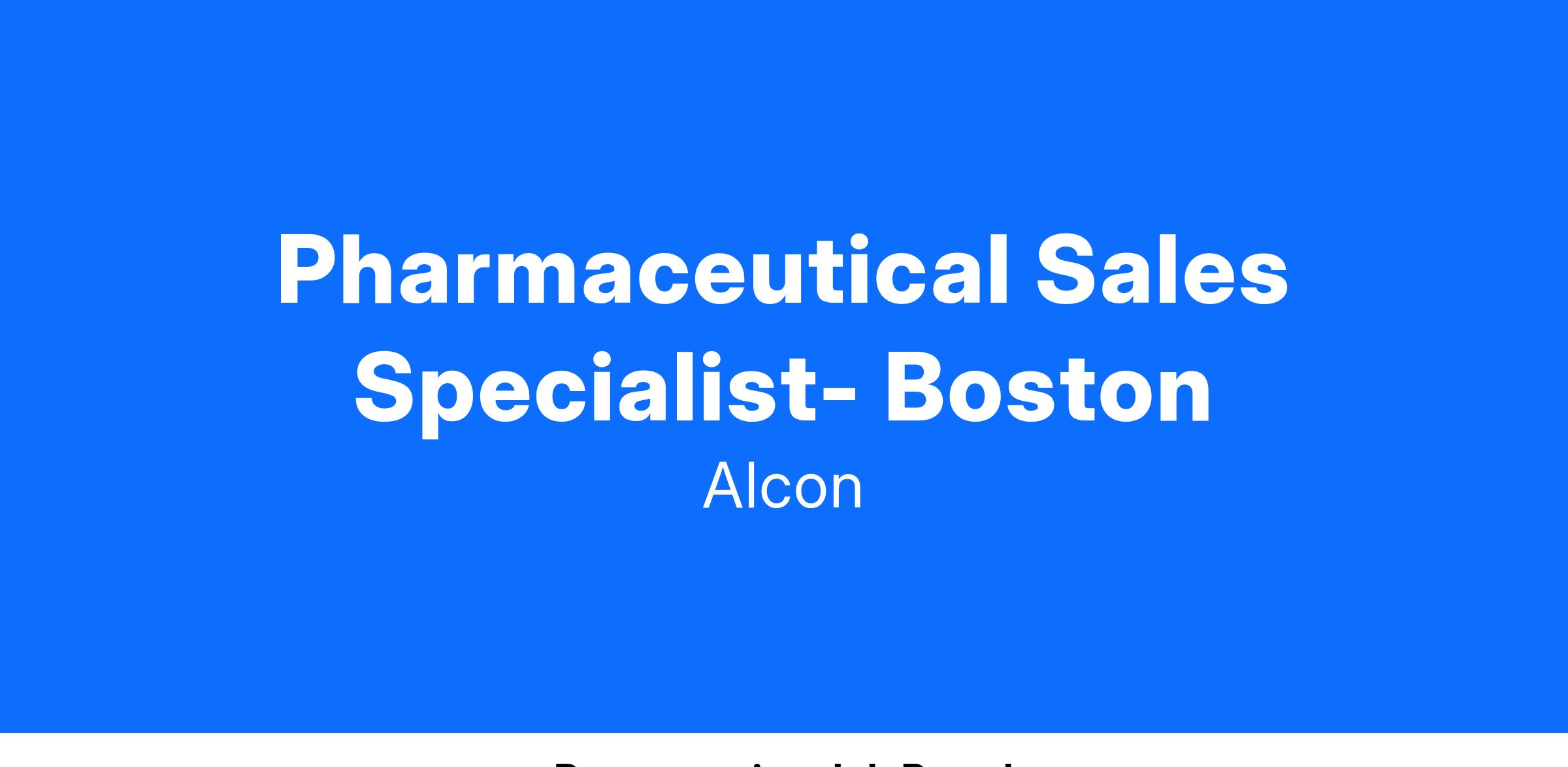 We foster an inclusive culture and are looking for diverse, talented people to join Alcon. As a Sr. Associate, Pharmaceutical Sales one will be responsible for covering a large territory and will focus on a defined target list of physicians/practitioners within the territory. One will also assure the needs of all partners are met within compliance guidelines while developing relationships and maintaining an active presence in the pharmaceutical community or associated organizations throughout the territory area of Boston.