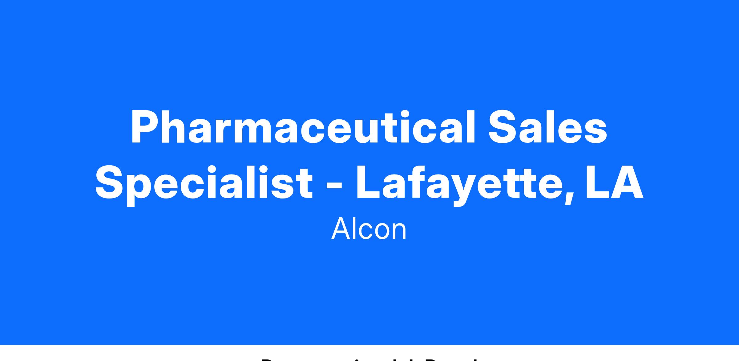 We foster an inclusive culture and are looking for diverse, talented people to join Alcon. As a Sr. Associate, Pharmaceutical Sales one will be responsible for covering a large territory and will focus on a defined target list of physicians/practitioners within the territory. One will also assure the needs of all partners are met within compliance guidelines while developing relationships and maintaining an active presence in the pharmaceutical community or associated organizations throughout the territory area of Lafayette, LA.