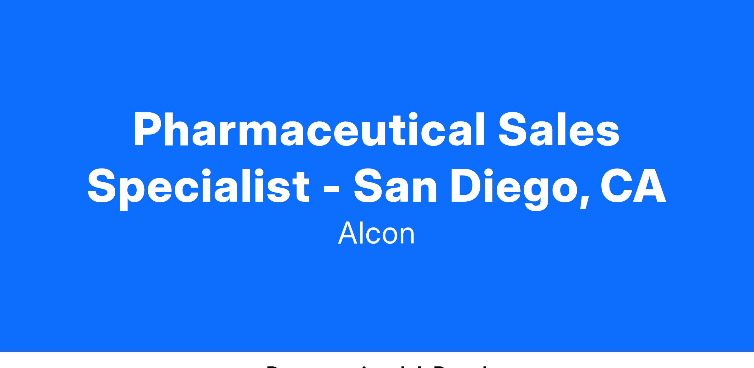 We foster an inclusive culture and are looking for diverse, talented people to join Alcon. As a Sr. Associate, Pharmaceutical Sales one will be responsible for covering a large territory and will focus on a defined target list of physicians/practitioners within the territory. One will also assure the needs of all partners are met within compliance guidelines while developing relationships and maintaining an active presence in the pharmaceutical community or associated organizations throughout the territory area of San Diego, CA.