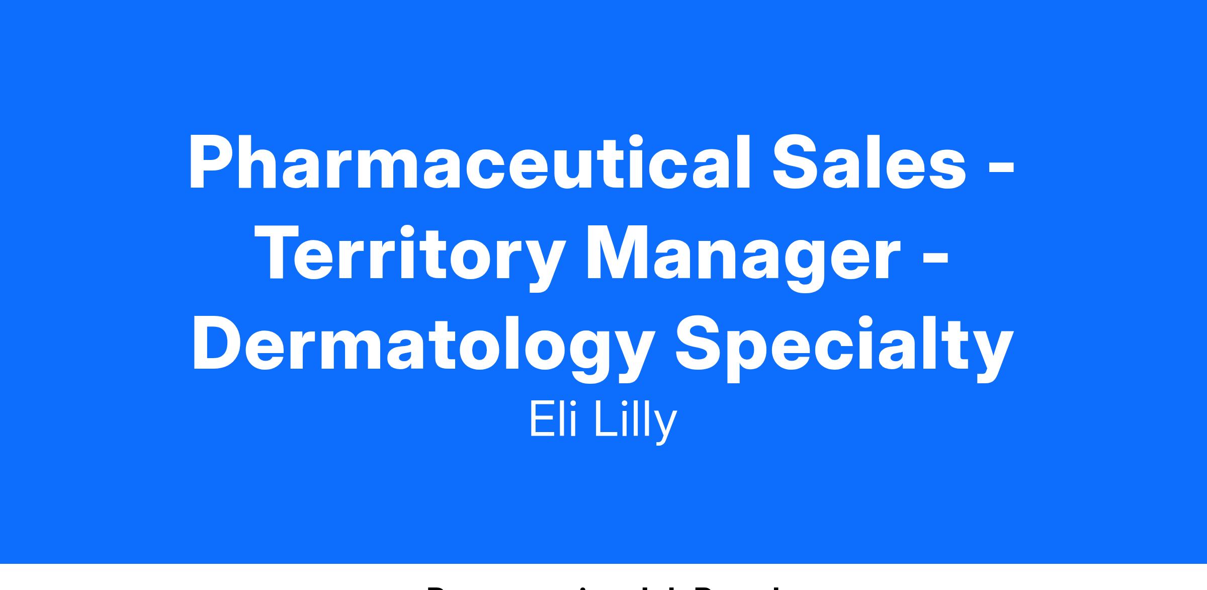 The Lilly Dermatology Specialty Territory Managers will be responsible for account-based selling to health care providers (HCPs) who prescribe and influence the treatment for the disease states represented in the Lilly dermatology portfolio. This includes HCPs in dedicated dermatology practices, as well as representatives in key hospital accounts, including dermatologists, dermatology fellows, dermatology educators, chief internal medicine residents, chief family practice residents and residents involved in dermatology rotations. You will build relationships with key customers in the dermatology space to increase Lilly’s ability to drive adoption of our new and existing therapies. They will also identify and develop business relationships with state and local advocacy groups, teaching institutions, key influencers, and managed care organizations. They will be viewed as a credible expert and resource.
