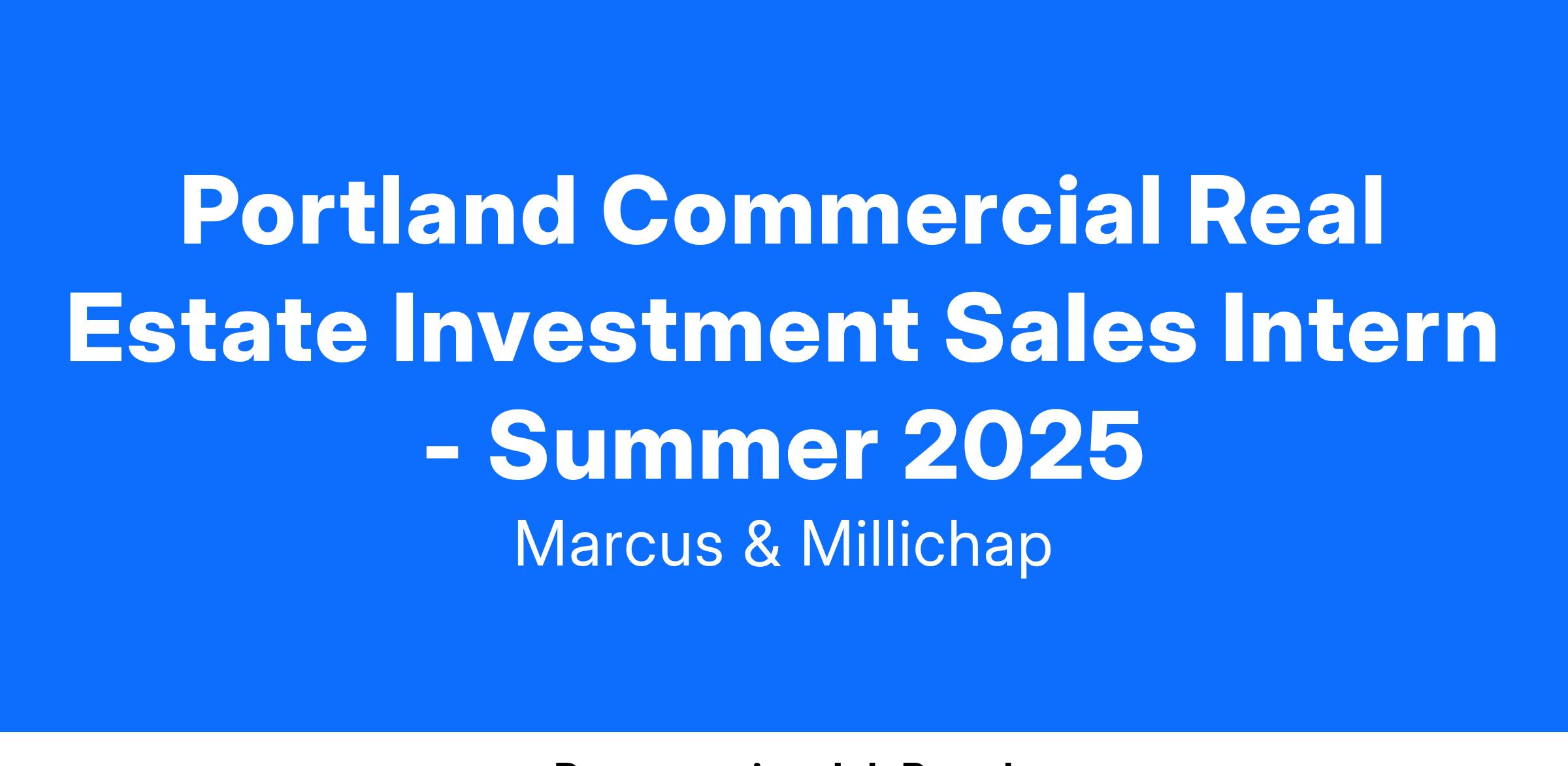 Portland Commercial Real Estate Investment Sales Intern - Summer 2025