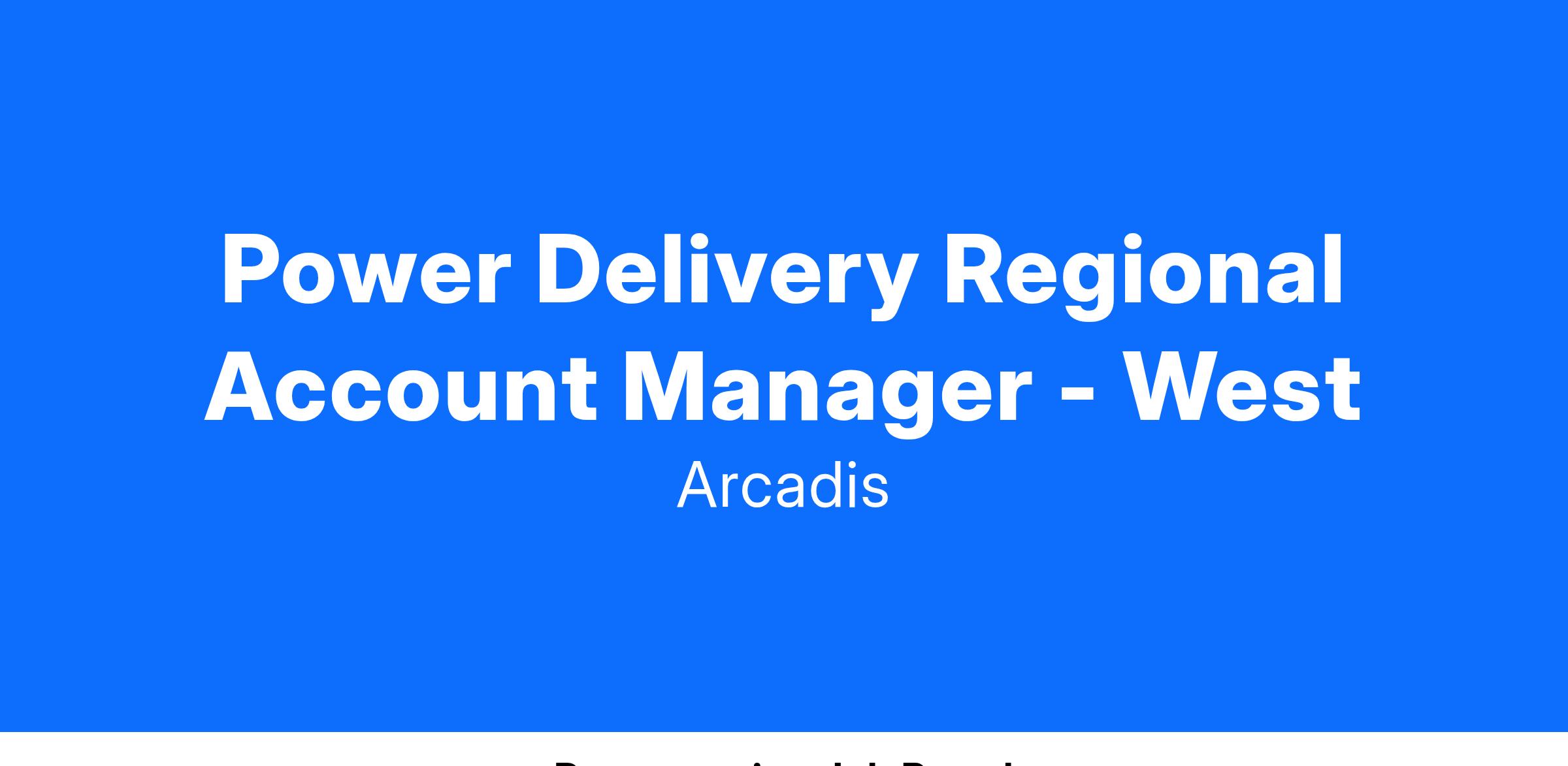 Arcadis is currently seeking a highly motivated Power Delivery Regional Account Manager to join Power Delivery team in anywhere in the United States.