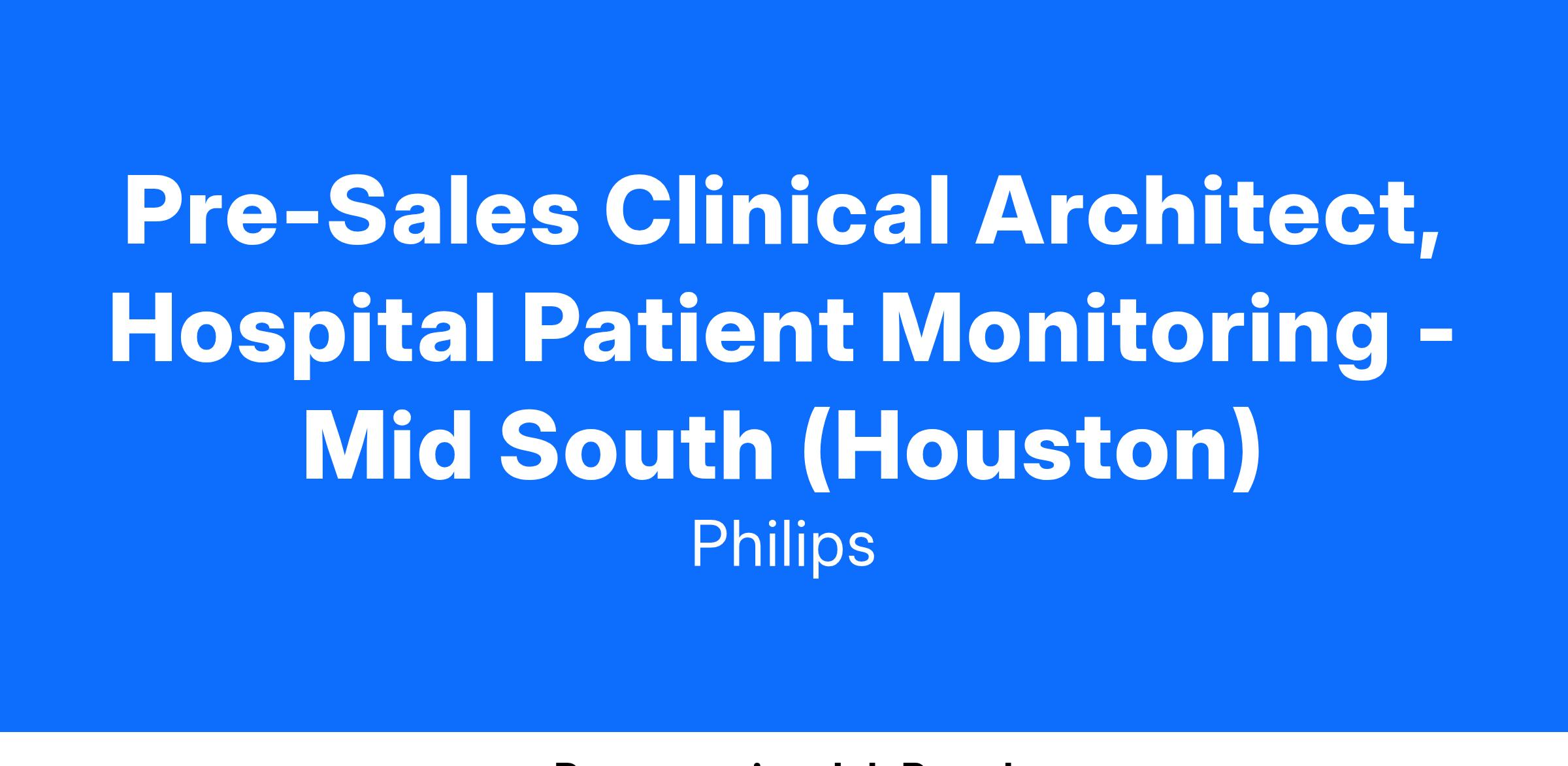 Pre-Sales Clinical Architect, Hospital Patient Monitoring – Mid South (Houston)