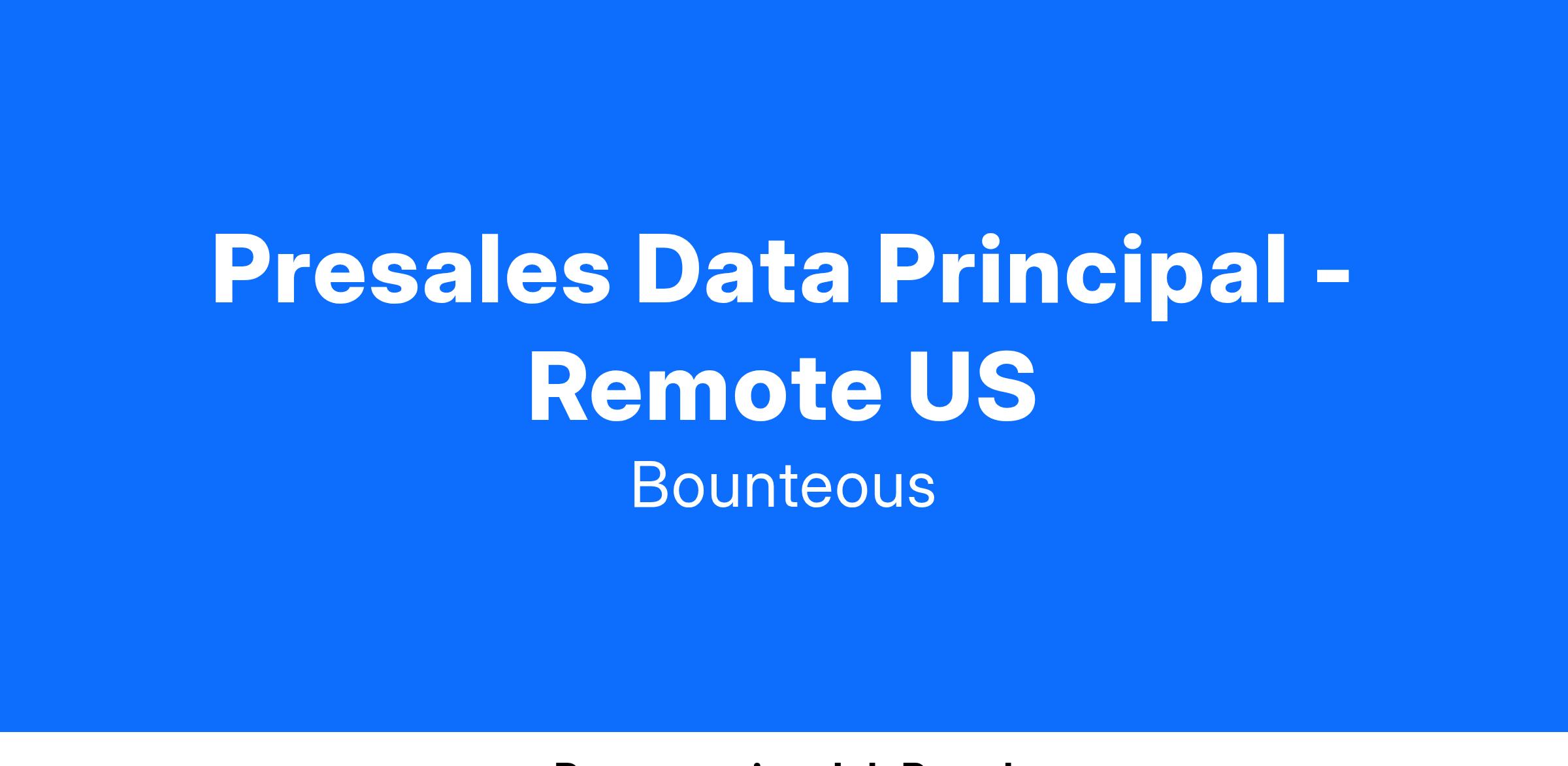 Are you a passionate technologist with a proven track record of converting complex data solutions into successful deals, especially leveraging SaaS technologies including Snowflake and Databricks? We're looking for a data-driven Pre-Sales Data Principal to join our team and play a pivotal role in driving customer success through innovative data architecture and solutions.