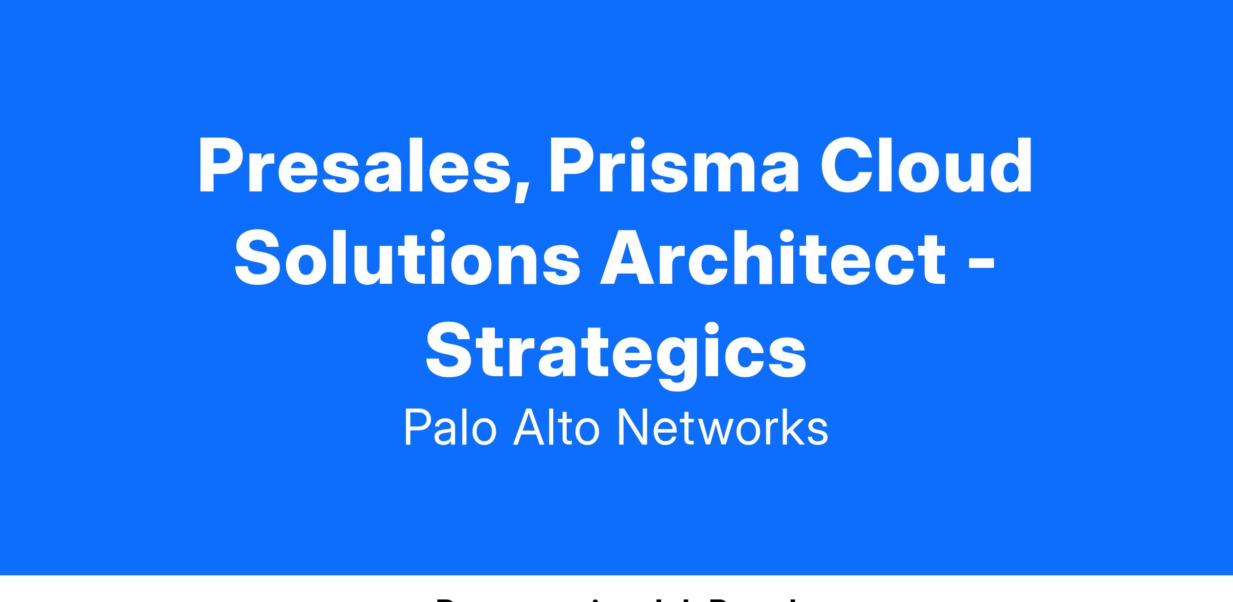 We aim to make the role of the SA the highlight of your technical sales career. You will be surrounded by the preeminent cybersecurity experts in the industry who will support your success personally, professionally, and with your customer engagements. Rallying all the Palo Alto Networks resources for the benefit of customer success, you will become the influential cloud native security thought leader.