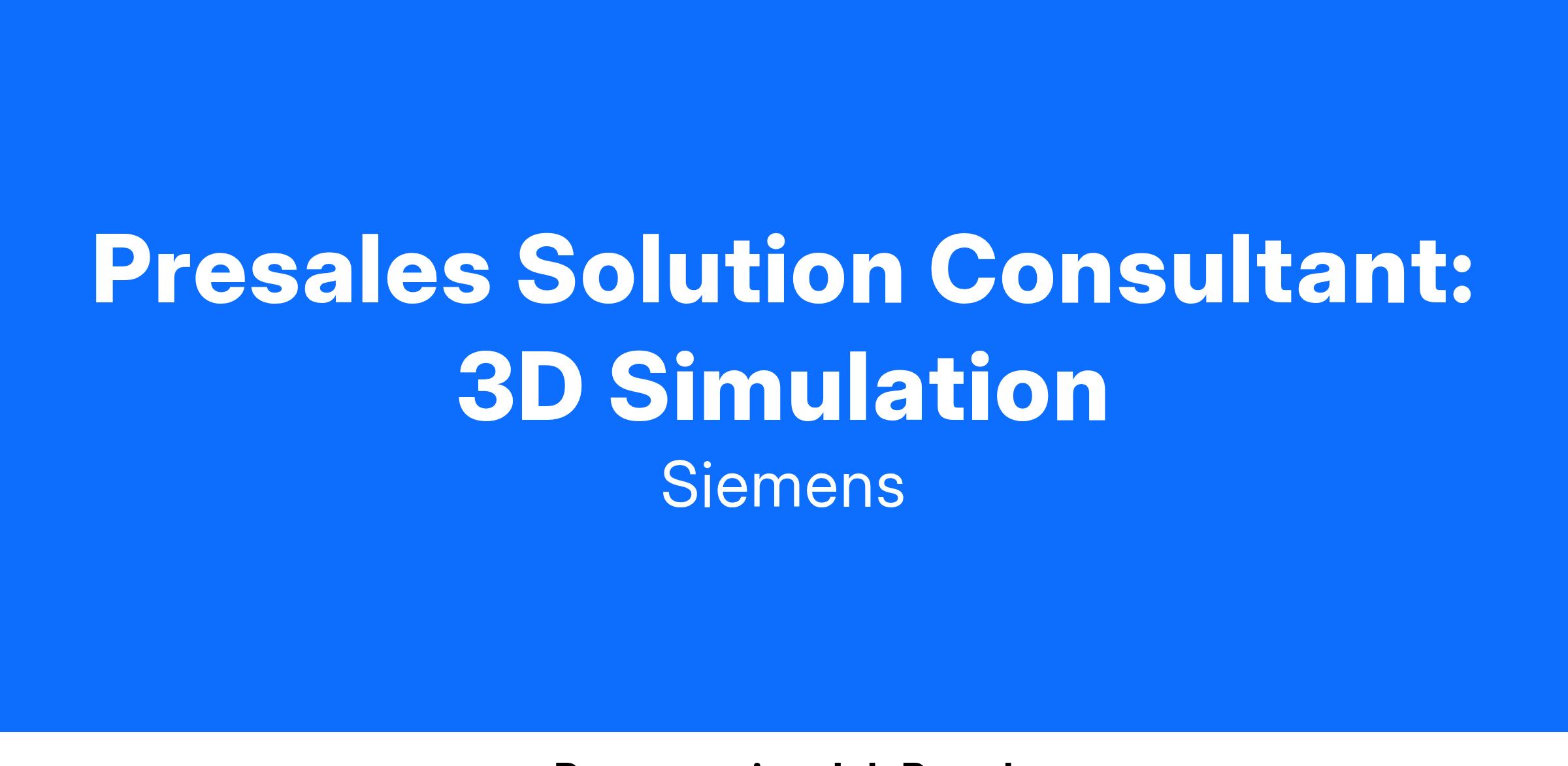This is a presales role within the Siemens Digital Industries Software (DISW) division. You would be responsible for positioning DISW simulation solutions to meet technical and business challenges presented by our customers. This requires gathering customer and industry business and technical requirements and then executing customer facing demonstrations, benchmarks, and evaluations to deliver against those requirements. You have the opportunity to directly impact a customer through workflow development and enablement, and to directly impact product development by representing the voice of the customer.