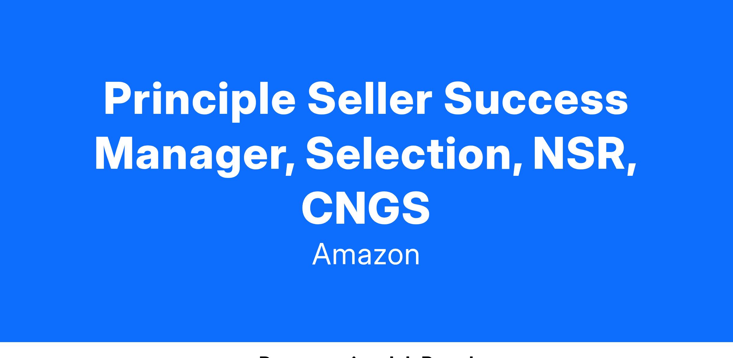 Principle Seller Success Manager, Selection, NSR, CNGS
