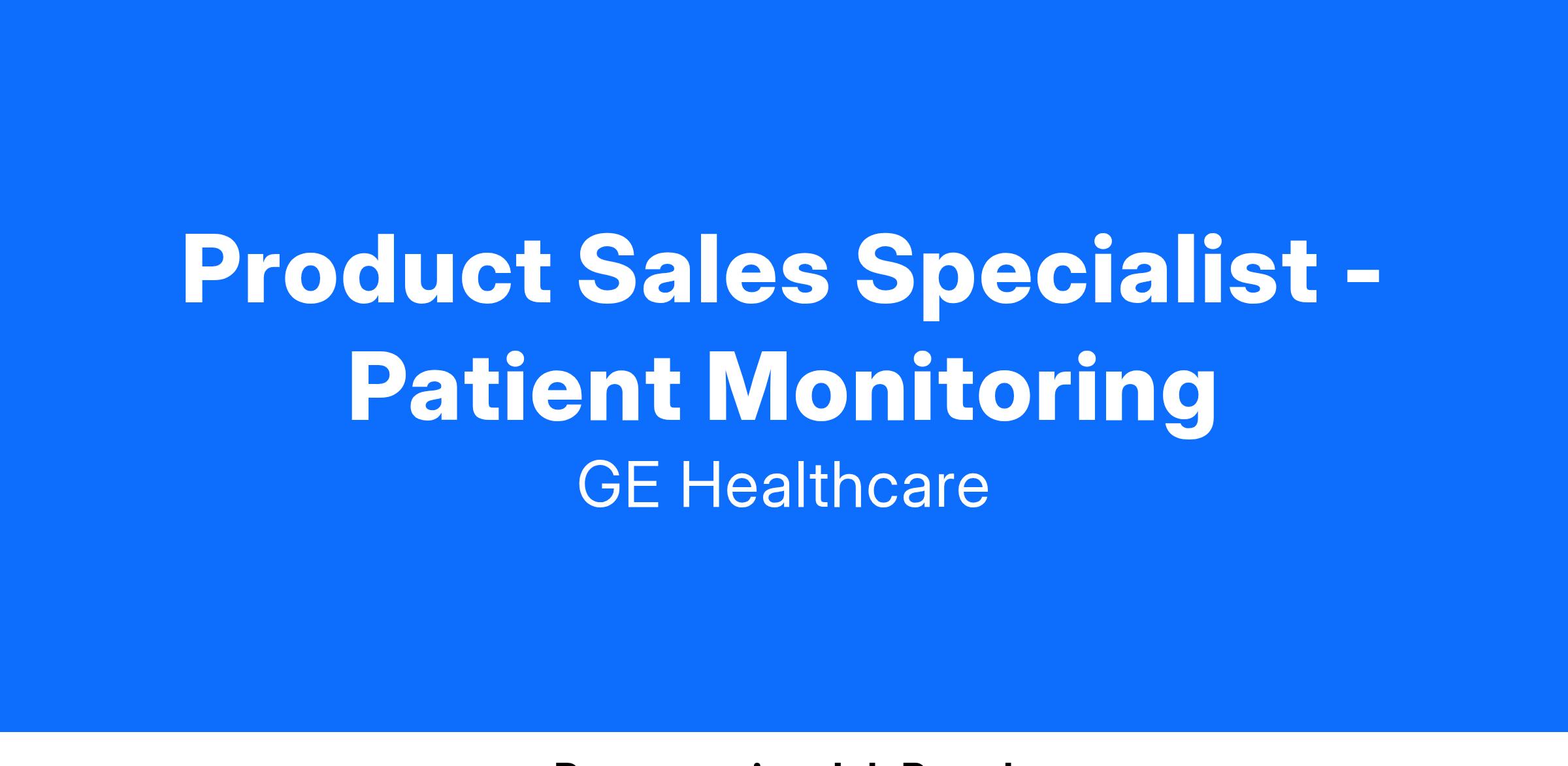 As the Product Sales Specialist for GE Healthcare Patient Care Solutions, you will be responsible for identifying and winning sales opportunities for Patient