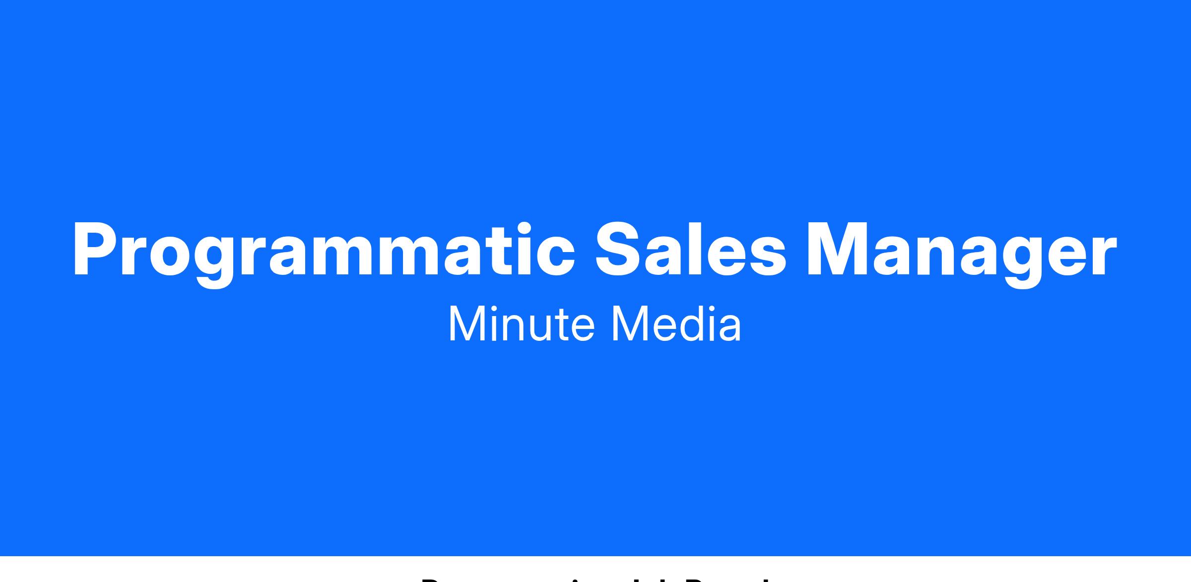 Minute Media is looking for a Programmatic Sales Manager to join our growing team. The primary responsibility of this role is to meet and exceed revenue targets while focusing on driving profitable growth.