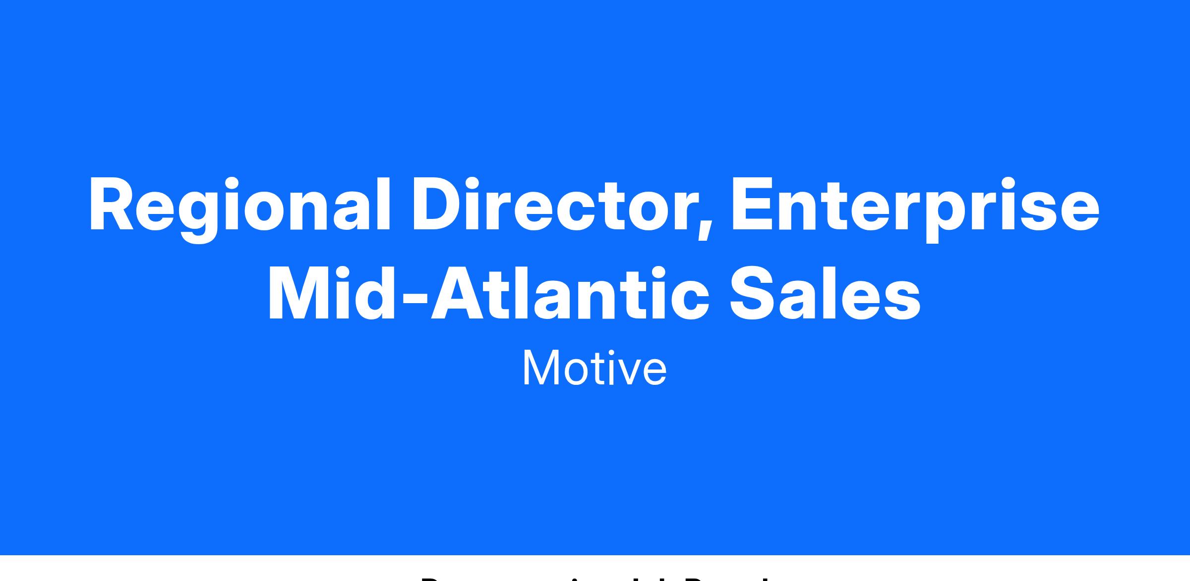 As a Regional Director, Enterprise Mid-Atlantic Sales at Motive, you will be a key leader in our fastest growing segment at Motive. Our RD’s manage a team of Enterprise Account Executives and guide them in both engaging and closing Motive’s largest prospects. You’ll lead initiatives across hiring, coaching, and enablement to support Motive’s growth & success. Your team will sell into the most impactful companies in North America that power the physical economy.