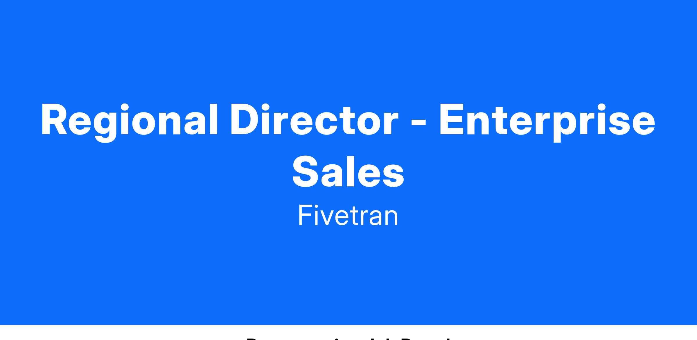 Fivetran is building data pipelines to power the modern data stack for thousands of companies. We’re looking for a Regional Director, Enterprise Sales will lead and scale a team of high-achieving, high-integrity Enterprise Account Executives focused on driving new business and expansion opportunities across Fivetran’s most strategic accounts. This role reports directly to the VP of Enterprise Sales and will be a foundational leader in our Enterprise business.