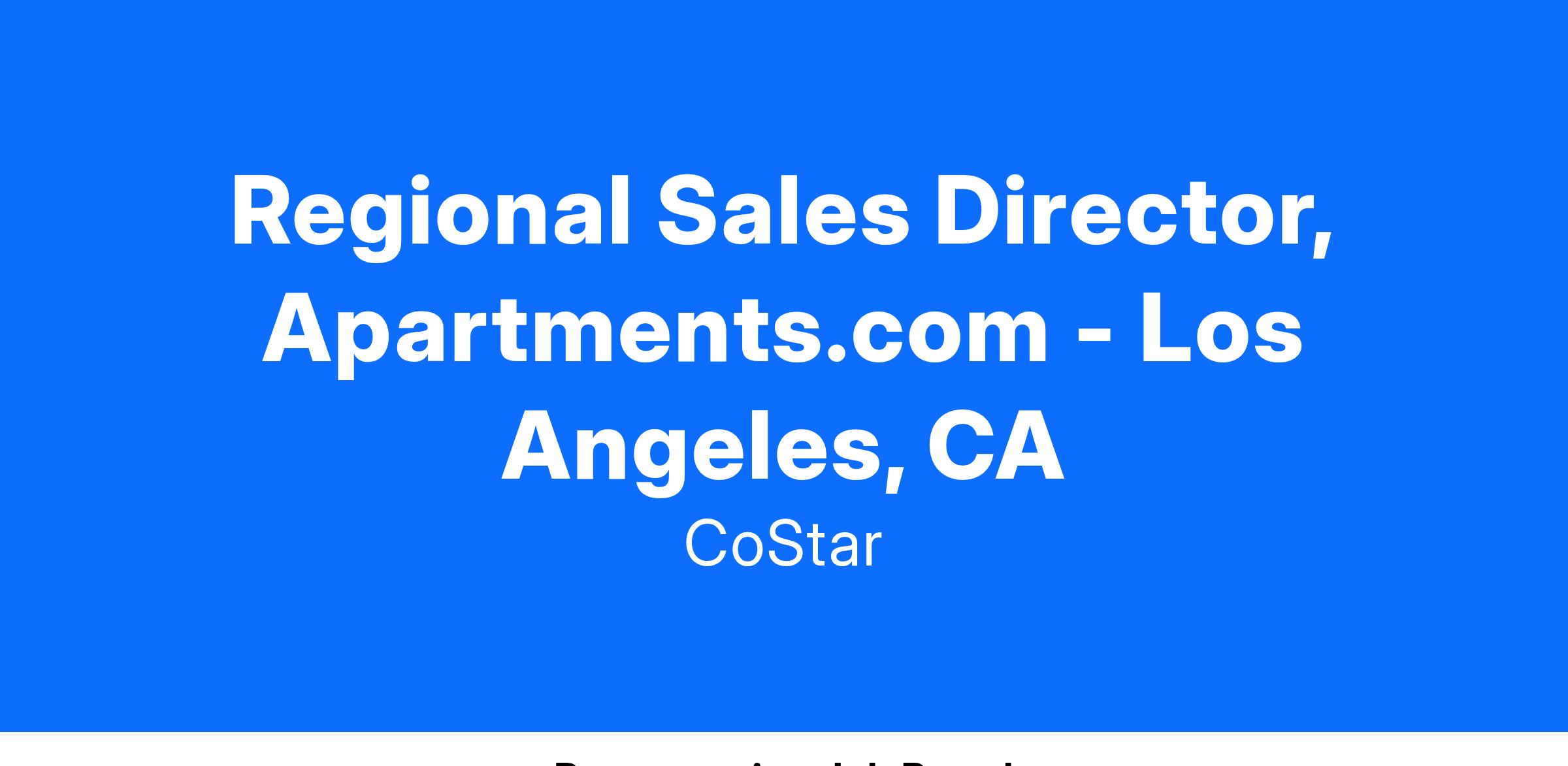 As an Apartments.com Regional Director, you will be responsible for ensuring the development and successful delivery of growth objectives for multifamily marketing and Apartments.com Market Analytics in their region/team. The RD is responsible for growing and developing the region’s revenues by selling new advertising and info subscriptions to new customers, growing existing customer revenues by up/crossing selling additional/other costar services and ensuring high levels of customer service and high renewal rates. The Apartments.com Sales team is the top sales team in the multi-family industry. As part of the team, you may be asked to participate in sales efforts with other residential products through CoStar Group, including Homes.com. The RD will manage Sales Associates who are focused on growing new & existing customer business, driving product usage/adoption, preventing reversals, managing accounts, and providing outstanding customer service.
