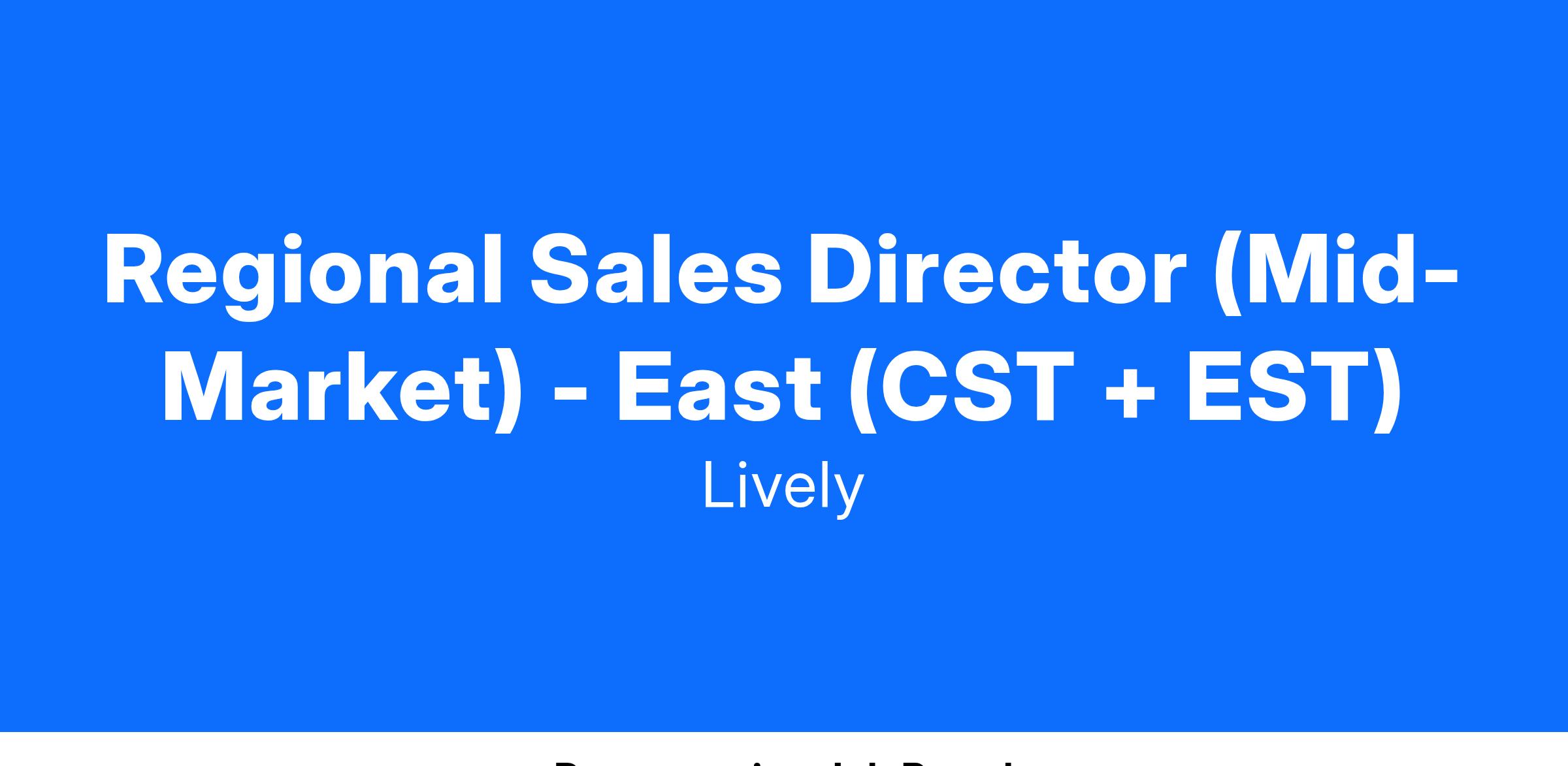 Regional Sales Director (Mid-Market) - East (CST + EST)