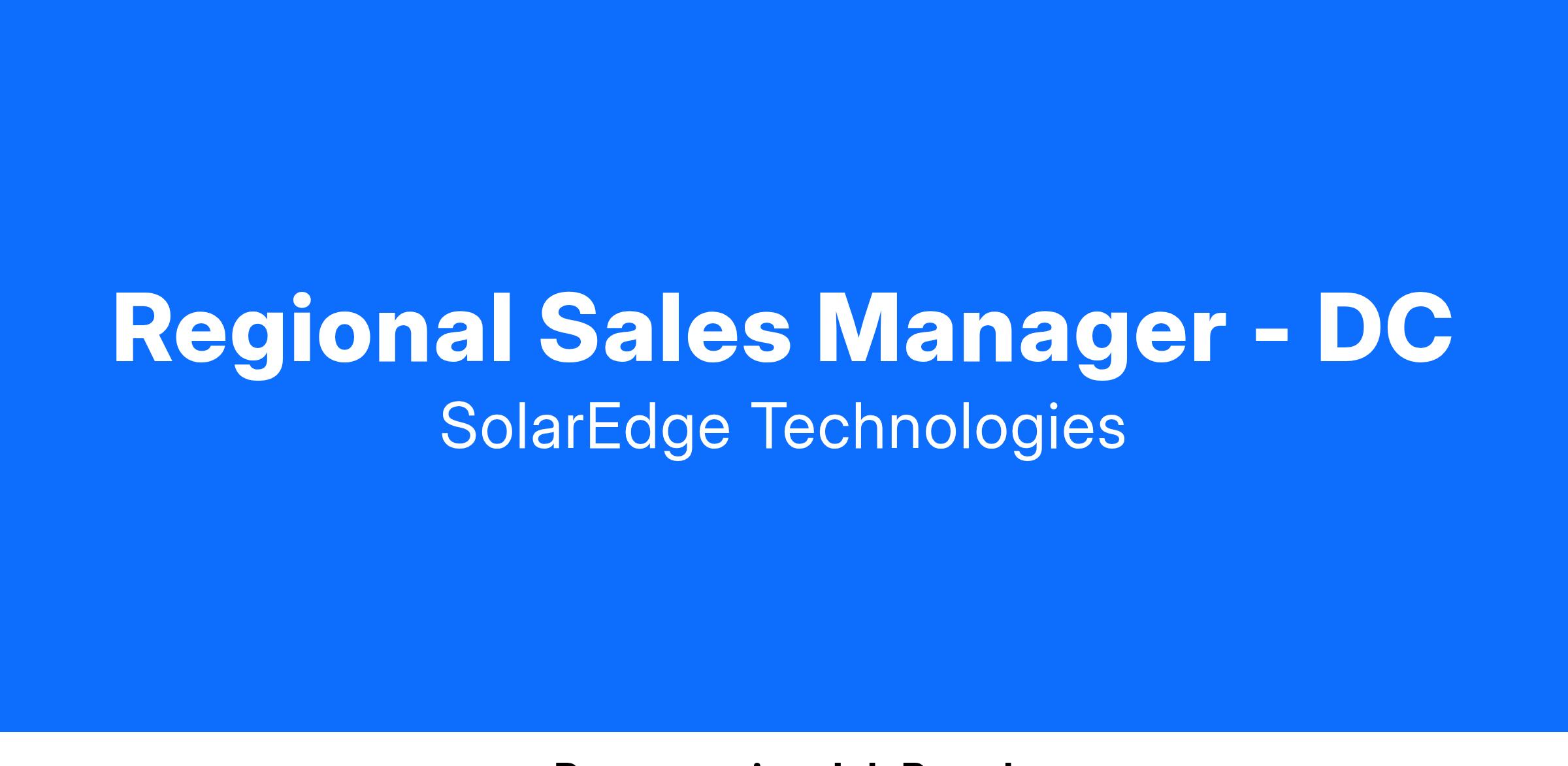 This position provides the successful candidate with the opportunity to join the SolarEdge North America Sales Team and have a major part in leading the Companyβs sales efforts in all segments of the solar industry, residential, commercial and utility, through direct and channel sales.