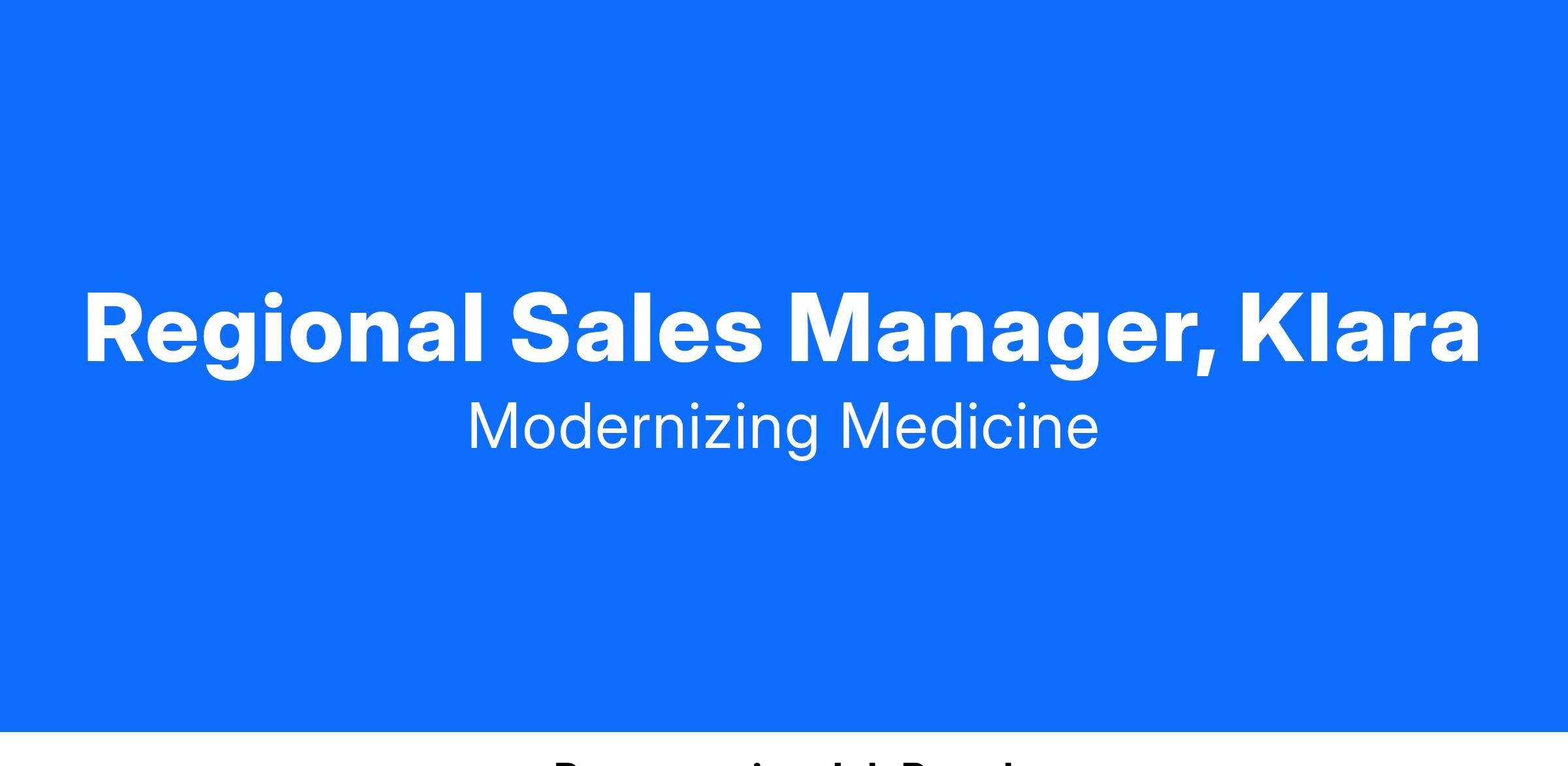 ModMed is hiring a driven Regional Sales Manager to join our positive, passionate, and high-performing Sales team focused on managing the sales process for Modernizing Medicine’s Patient Collaboration solution, Klara within small and mid-market accounts. You'll manage the sales process by prospecting and engaging new and existing leads, facilitating remote and onsite presentations to specialty practices, and negotiating contracts to close a significant volume of business.