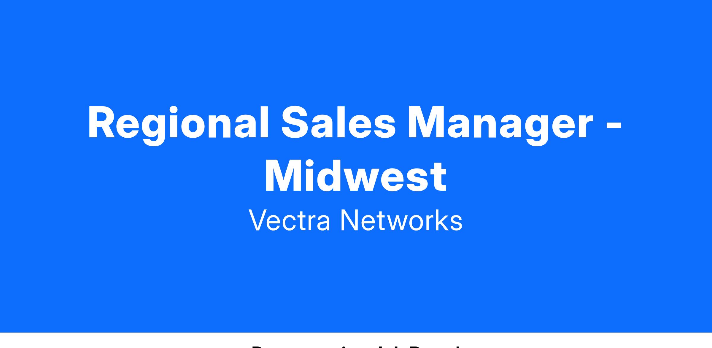 This Regional Sales Manager will need to be passionate about the extraordinary value Vectra is providing to our customers while also conducting themselves with professionalism, honesty and integrity.