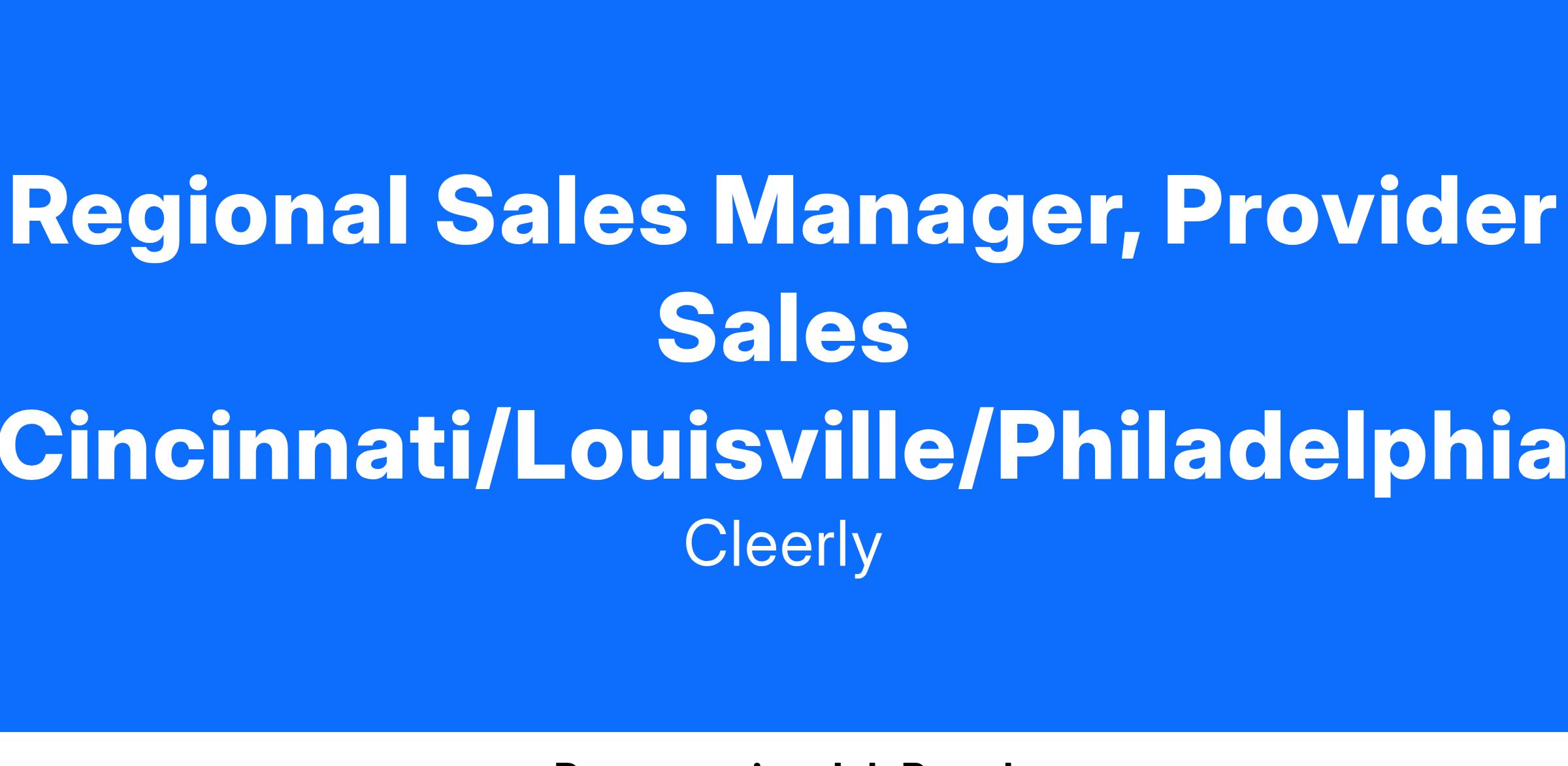 You will report to a Regional Director of Sales and be a part of a regional team that is focused on Hospitals, Providers and Imaging Centers. As a team, you will work to bring Cleerly to market across outlets throughout your region. You will be focused on Provider Sales. You must be located in: Cincinnati/Louisville/Philadelphia.