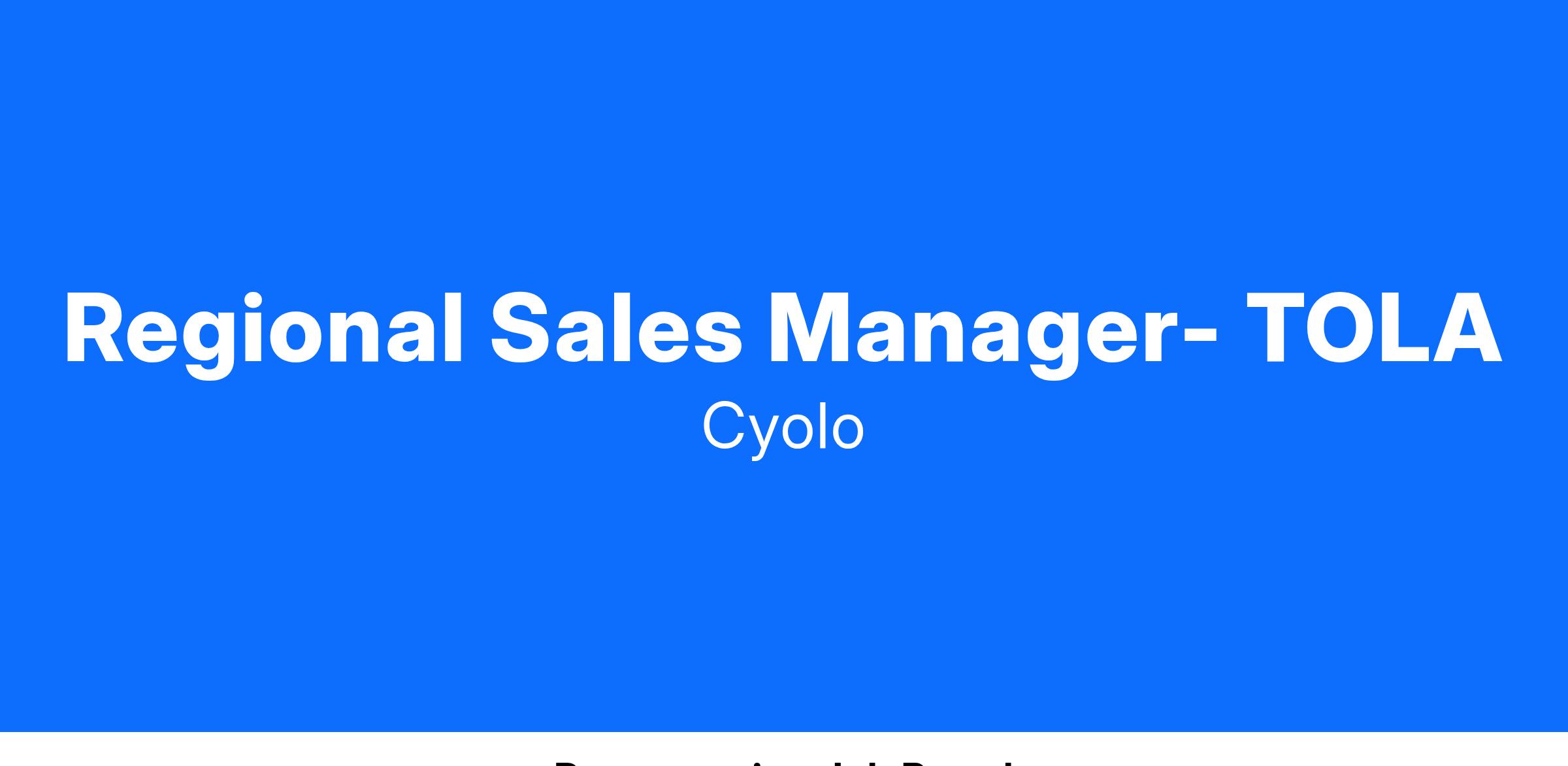 Join our Sales team as our Regional Sales Manager-TOLA Region