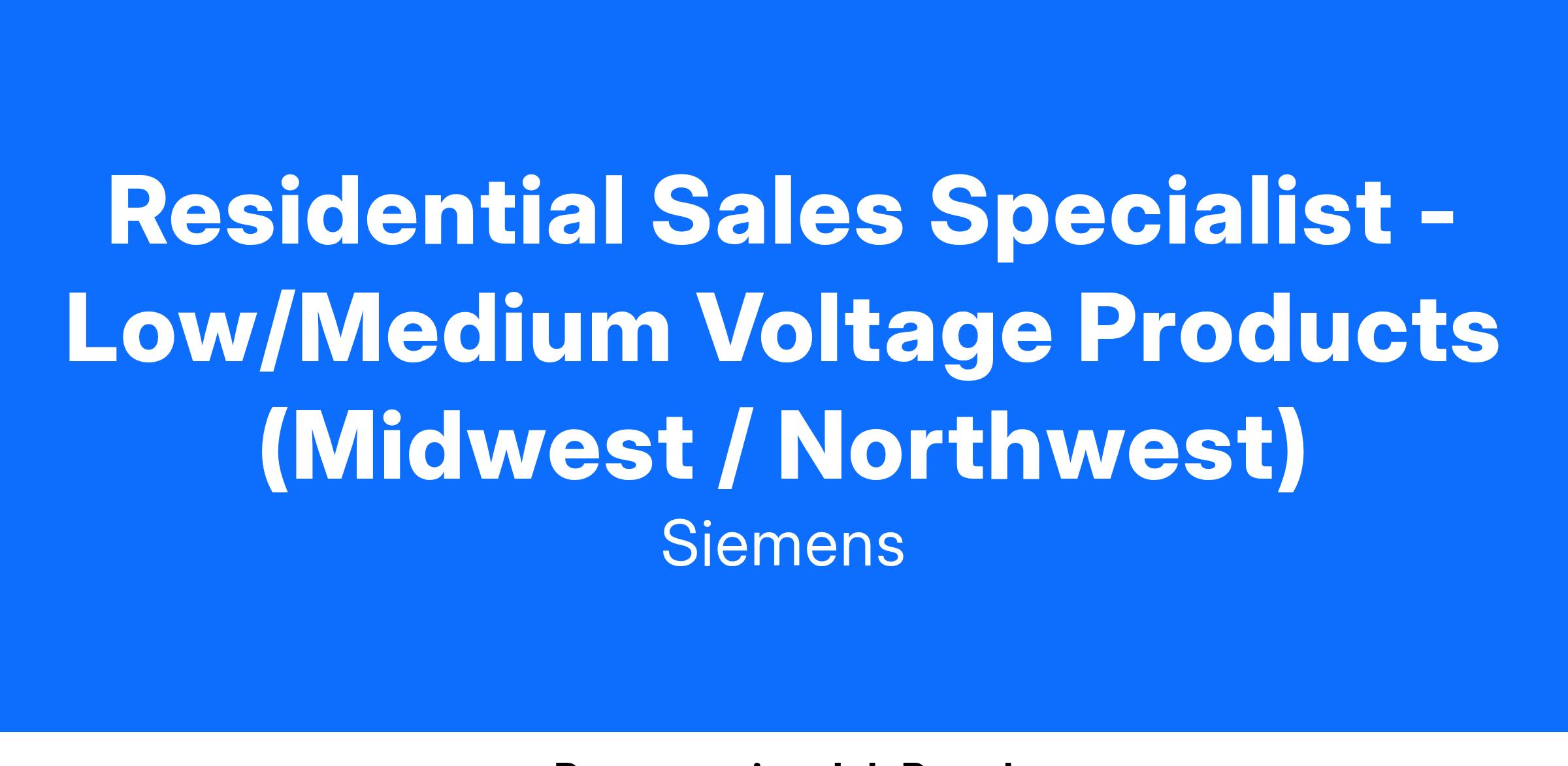 Residential Sales Specialist - Low/Medium Voltage Products (Midwest / Northwest)