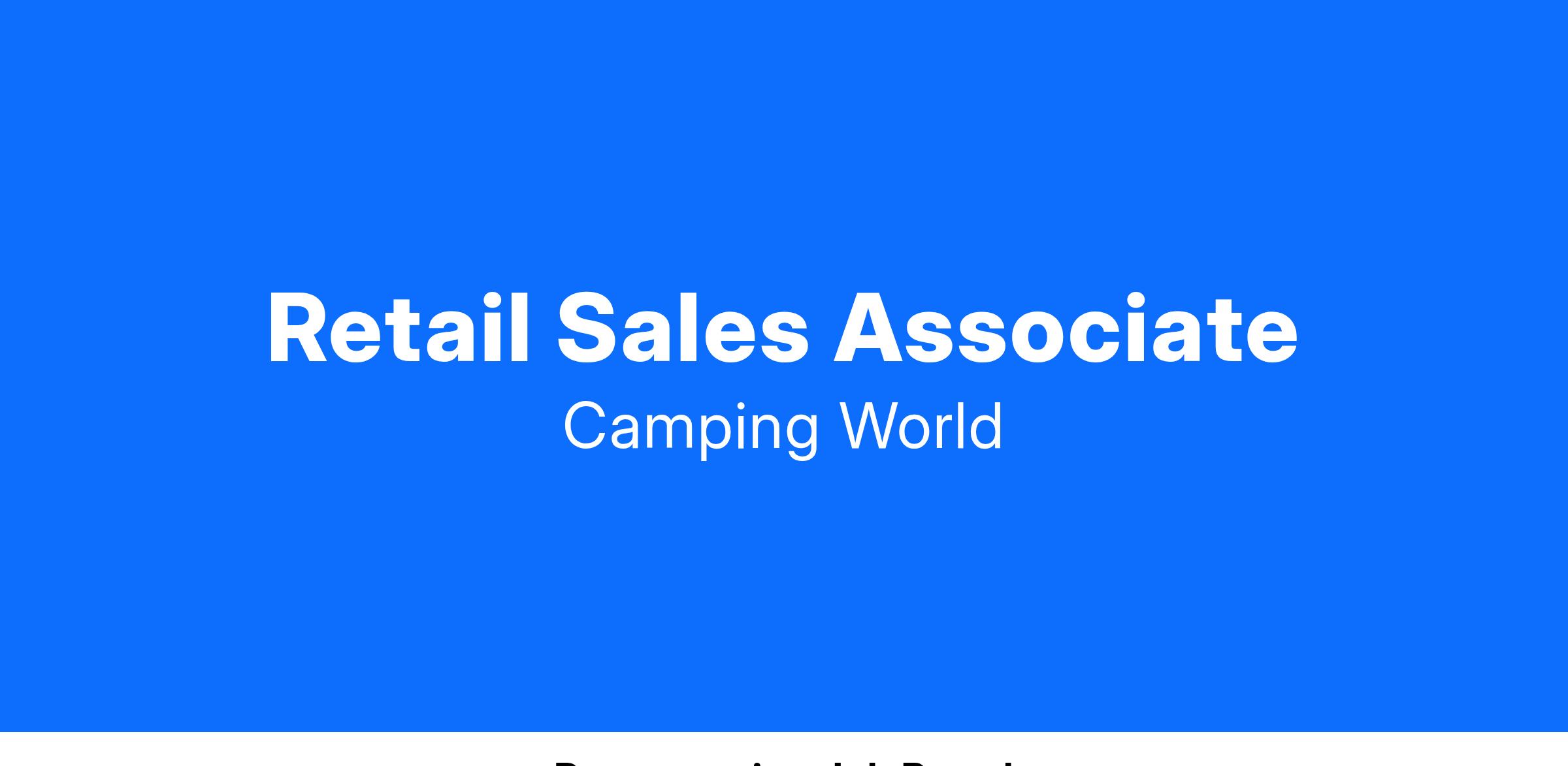 Camping World is seeking a Retail Sales Associate for our growing team. As a Retail Sales Associate you will be responsible for ensuring that every customer receives the best customer service.