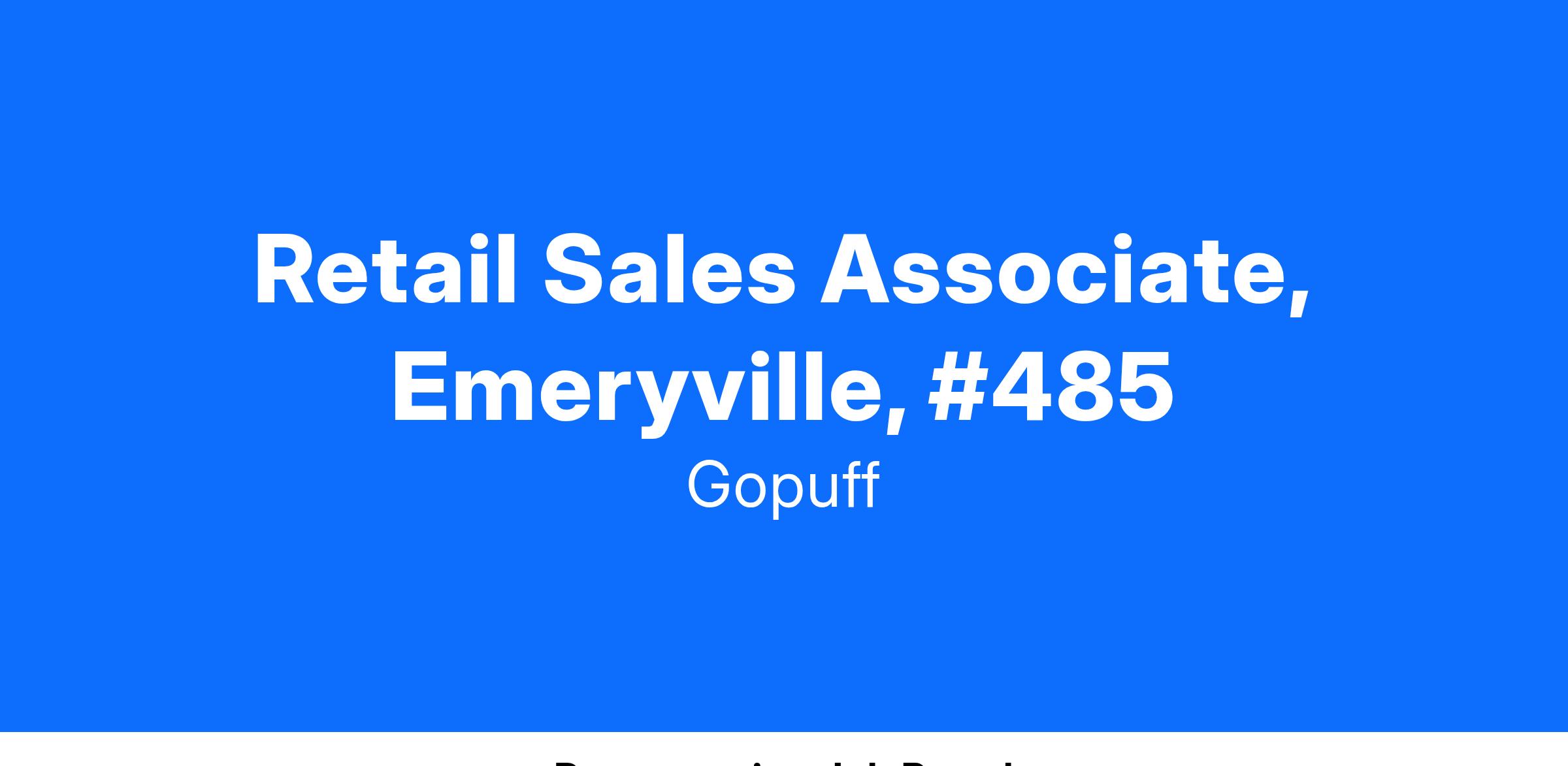 Retail Sales Associate, Emeryville, #485