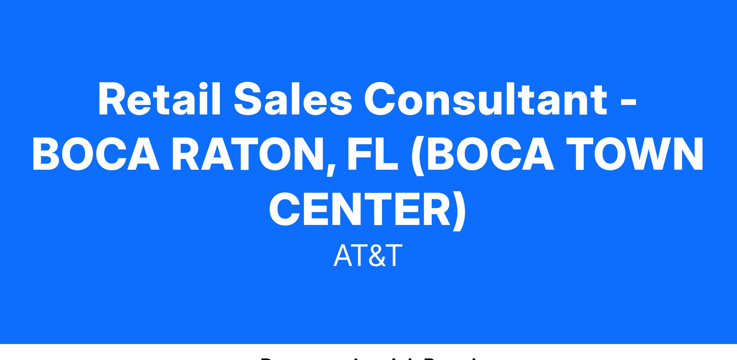 USA:FL:Boca Raton:6000 Glades Rd:RET/KSKWith our amazing wage opportunities, our average starting earnings per week begin at