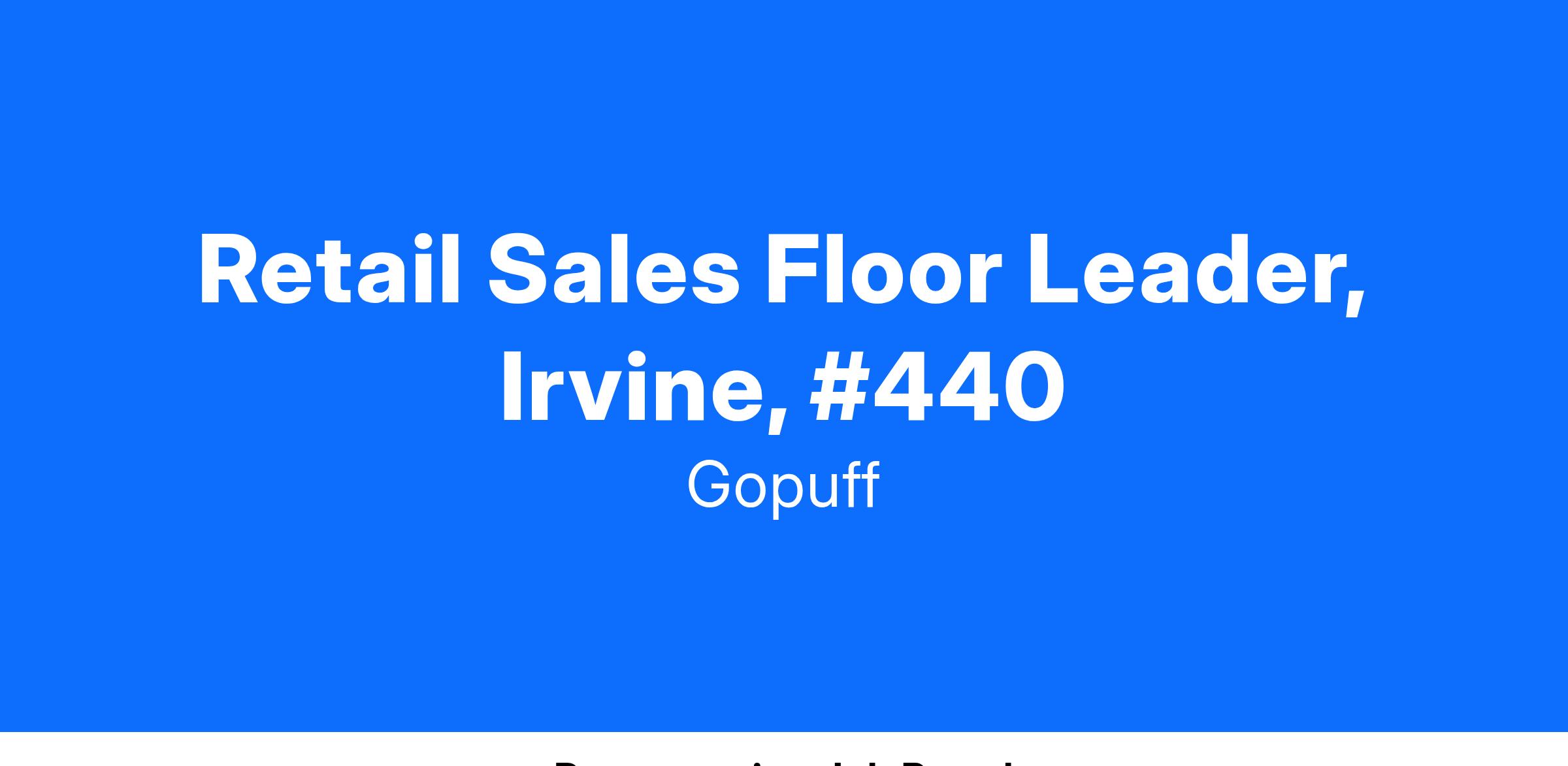 BevMo! by Gopuff is seeking a Sales Floor Leader for our Retail Operations team.As a Sales Floor Leader, you will support the Store Manager in creating an excellent customer experience while driving sales and delivering on business goals. Lead daily operations, including the motivation of the team to achieve store goals while providing an excellent customer experience. Help the Store Manager to analyze sales trends, and develop action plans to drive top line sales. Provide a strong leadership presence while enforcing all company policies and procedures, and ensuring compliance with regulatory requirements.