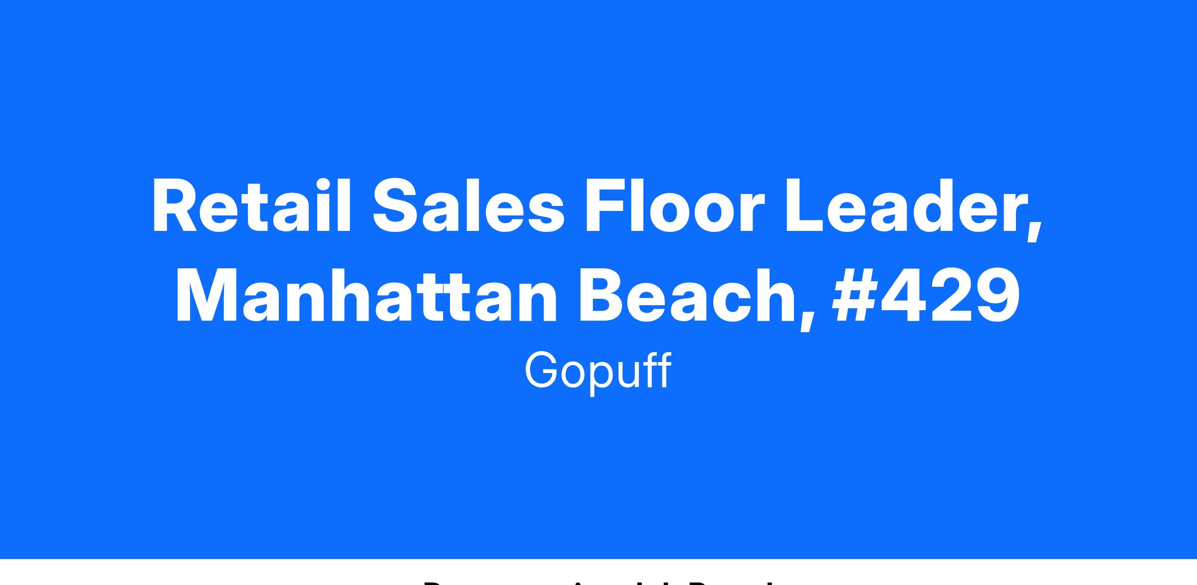 BevMo! by Gopuff is seeking a Sales Floor Leader for our Retail Operations team.As a Sales Floor Leader, you will support the Store Manager in creating an excellent customer experience while driving sales and delivering on business goals. Lead daily operations, including the motivation of the team to achieve store goals while providing an excellent customer experience. Help the Store Manager to analyze sales trends, and develop action plans to drive top line sales. Provide a strong leadership presence while enforcing all company policies and procedures, and ensuring compliance with regulatory requirements.