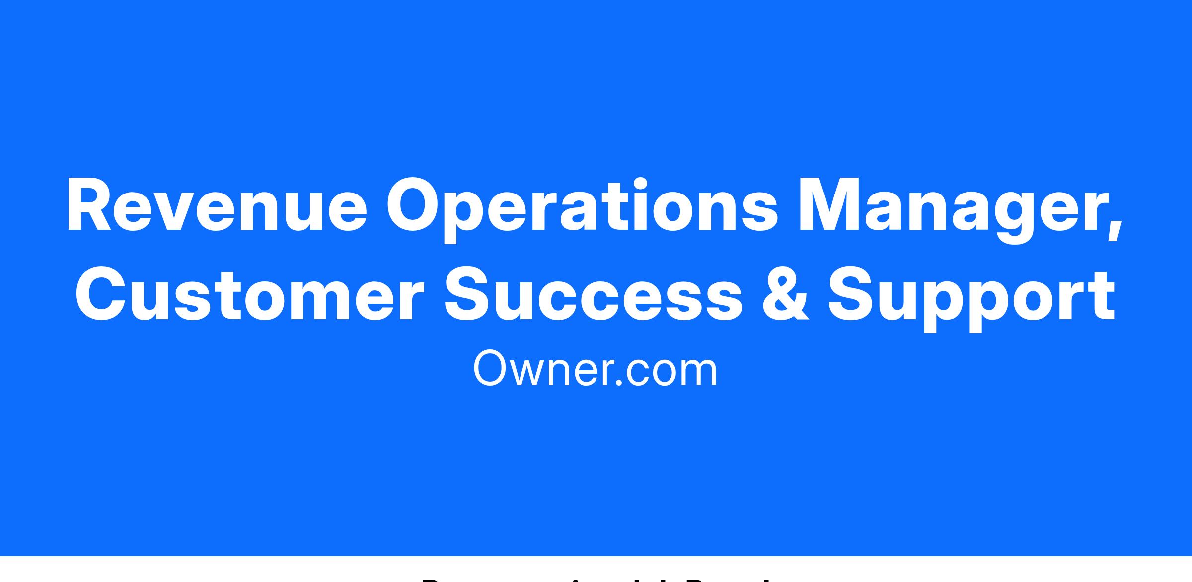 This role will be the conduit between our Revenue Operations function and the Customer Success and Support team. This person will serve the critical role of being embedded within the function they support, documenting their process, identifying areas for improvement, and then advocating their designs to the RevOps leader according to how it will impact company-level objectives. This provides an incredible opportunity to gain deep knowledge about critical areas of the business and drive strategic change as the business grows.