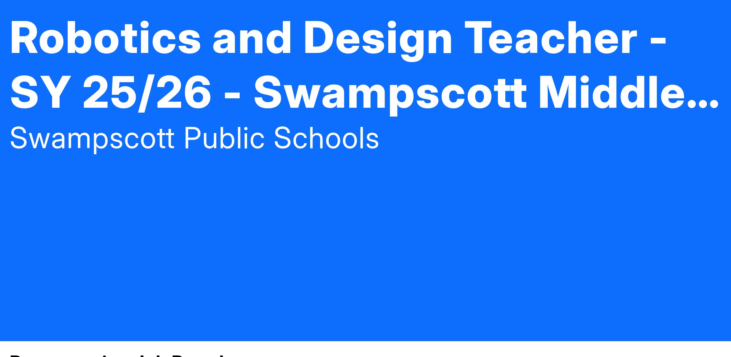 ROBOTICS AND DESIGN TEACHER - SWAMPSCOTT MIDDLE SCHOOL