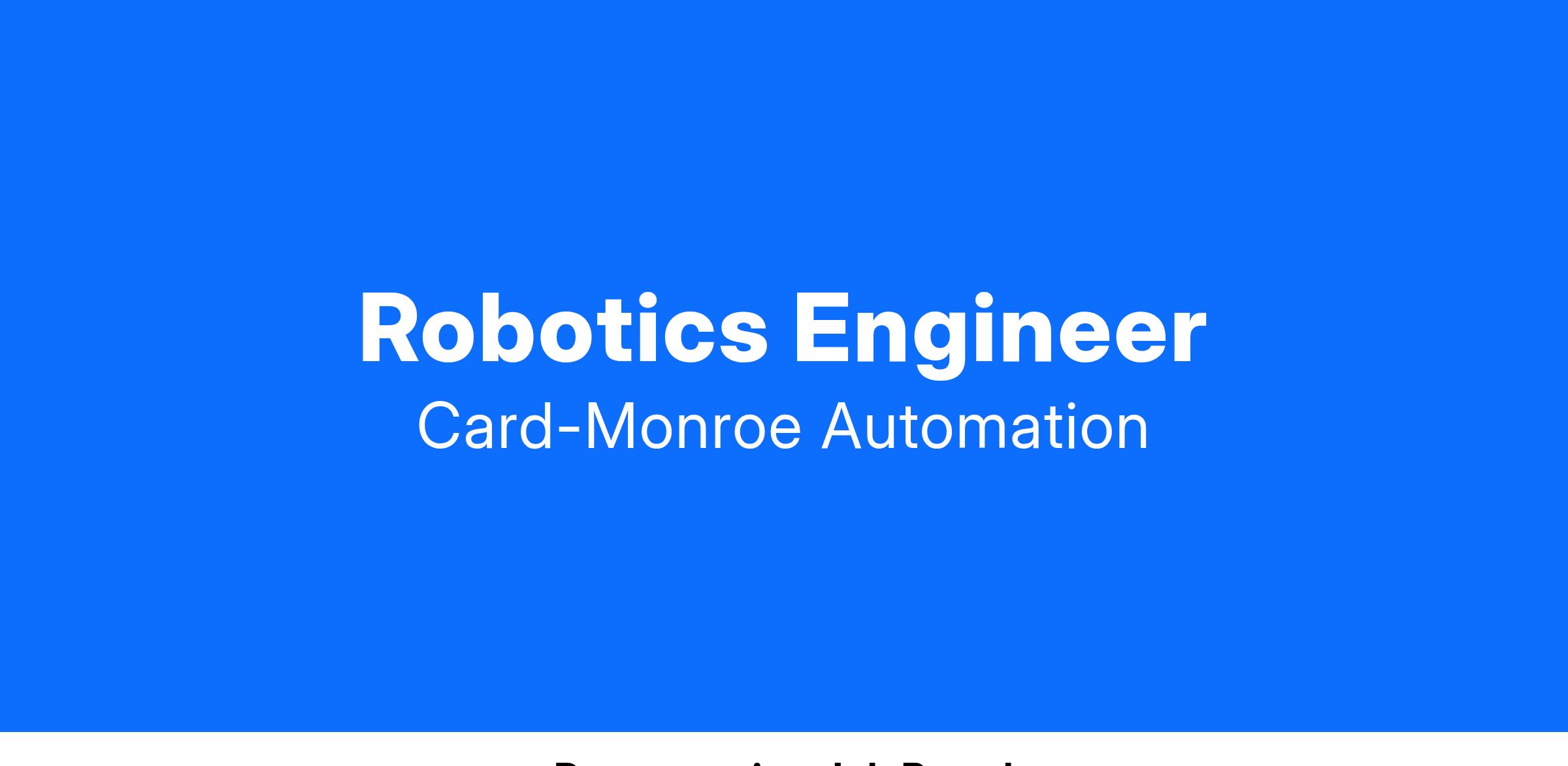 Come join our growing team at Card-Monroe Automation. Our team leverages the latest technologies, innovative thinking, and decades of experience across multiple industries to meet client's automation needs. We offer competitive salaries and a great benefit package.