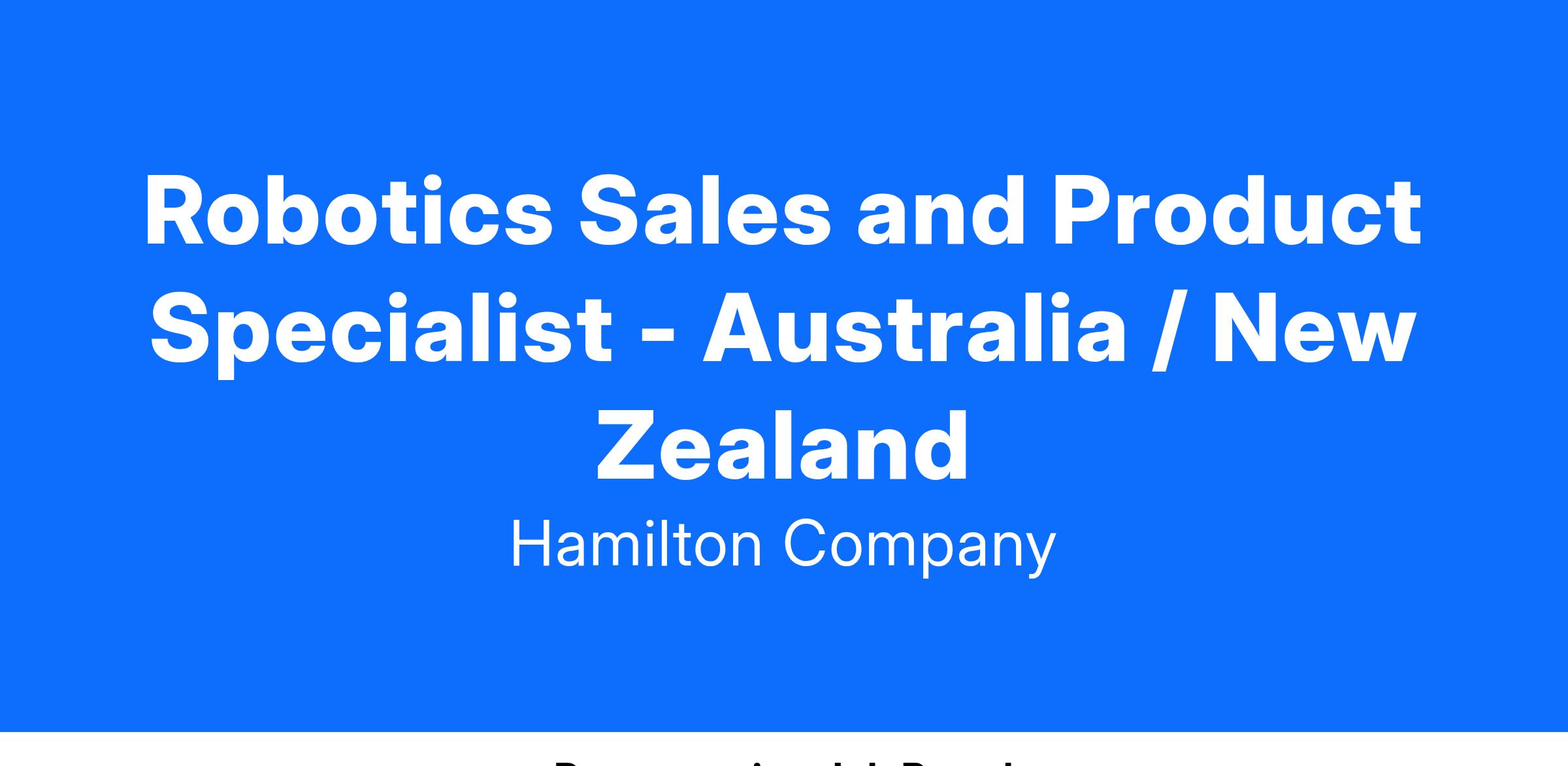 At Hamilton Company, we are on a journey to enable our customers to be more efficient with our solution offerings while being supported by the best-in-class post-sales support organization. The Hamilton Robotics Sales and Product Specialist for Australia/New Zealand is a key member of the commercial team and owns and exceeds the revenue target in the defined territory.Β If you enjoy the challenge of achieving and exceeding your revenue target while working in a supportive environment that values and rewards top-notch performance, come join us!