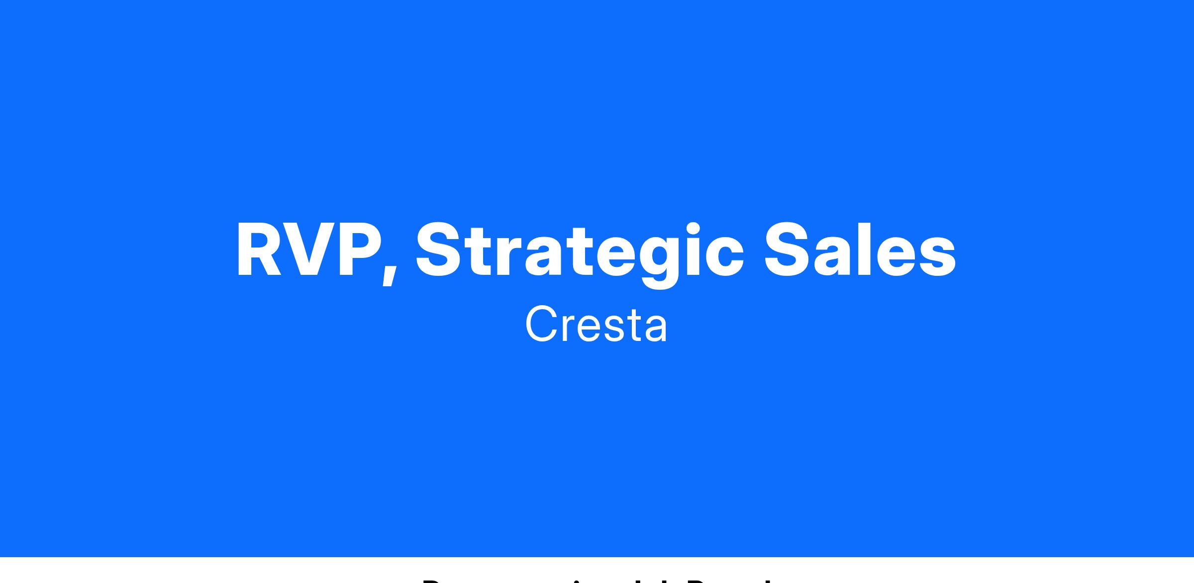 - Recruit, hire, develop, and empower a team of Strategic Sales Directors to consistently surpass Cresta’s revenue targets