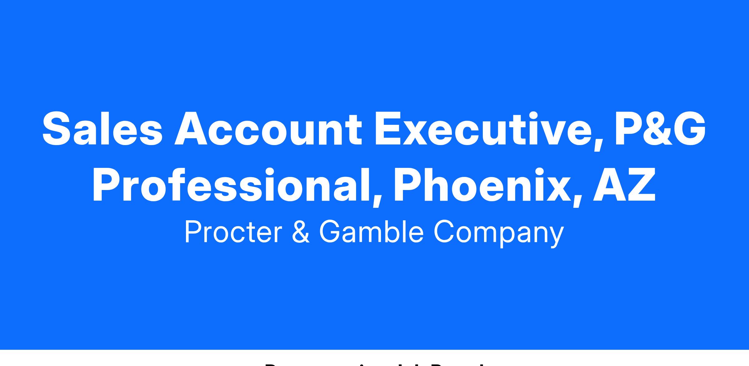 P&G Professional is a leading manufacturer and marketer of away from home products. P&G Professional Account Executives manage our business with Jan/San and Foodservice distributors, hospitality, healthcare, restaurants and other independent businesses. They develop business building ideas and sell these ideas to our accounts, as well as manage their implementation. They market products which will enable customers to meet their consumers' needs. P&G Professional Account Executives are part of a multi-functional Customer Team which includes experts in Finance, Logistics, Marketing, and Information Systems to provide the resources needed to develop a new and successful way of doing business.