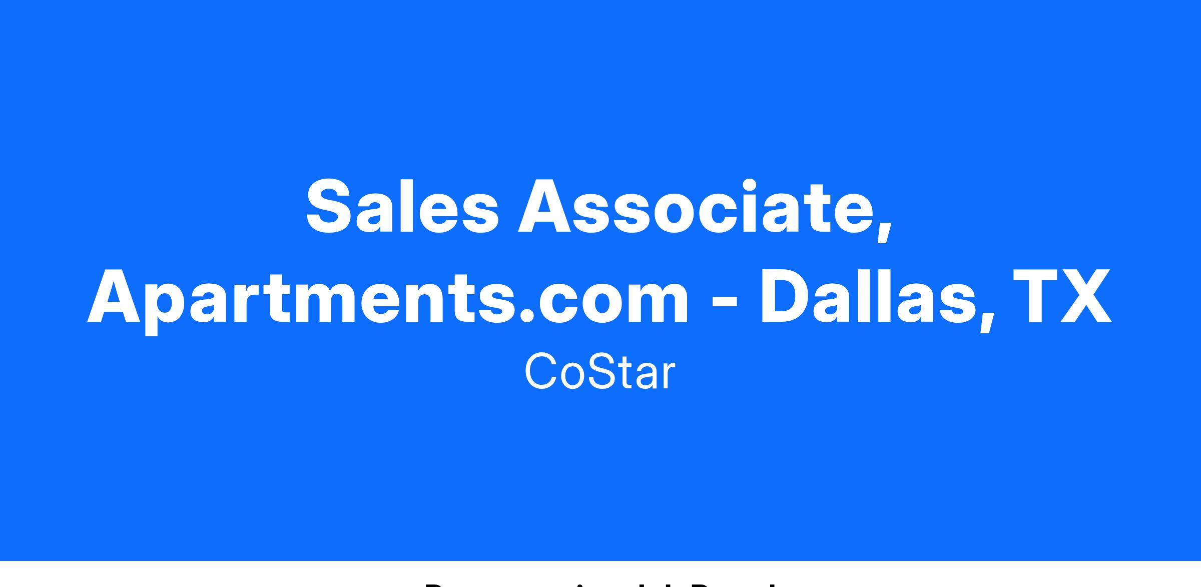 We are looking for passionate sales professionals to build long-lasting, service-focused customer relationships. As an Apartments.com Sales Associate, you will join a dynamic team that operates as a strategic digital marketing partner to the multifamily industry. The Apartments.com Sales team is the top sales team in the multi-family industry. As part of the team, you may be asked to participate in sales efforts with other residential products through CoStar Group, including Homes.com. Through engaging sales presentations and in-person client visits, you will advise and sell clients marketing solutions that enable them to achieve their goals. You will also grow revenue by prospecting new clients and growing existing accounts by identifying and developing new marketing solutions for their portfolios.