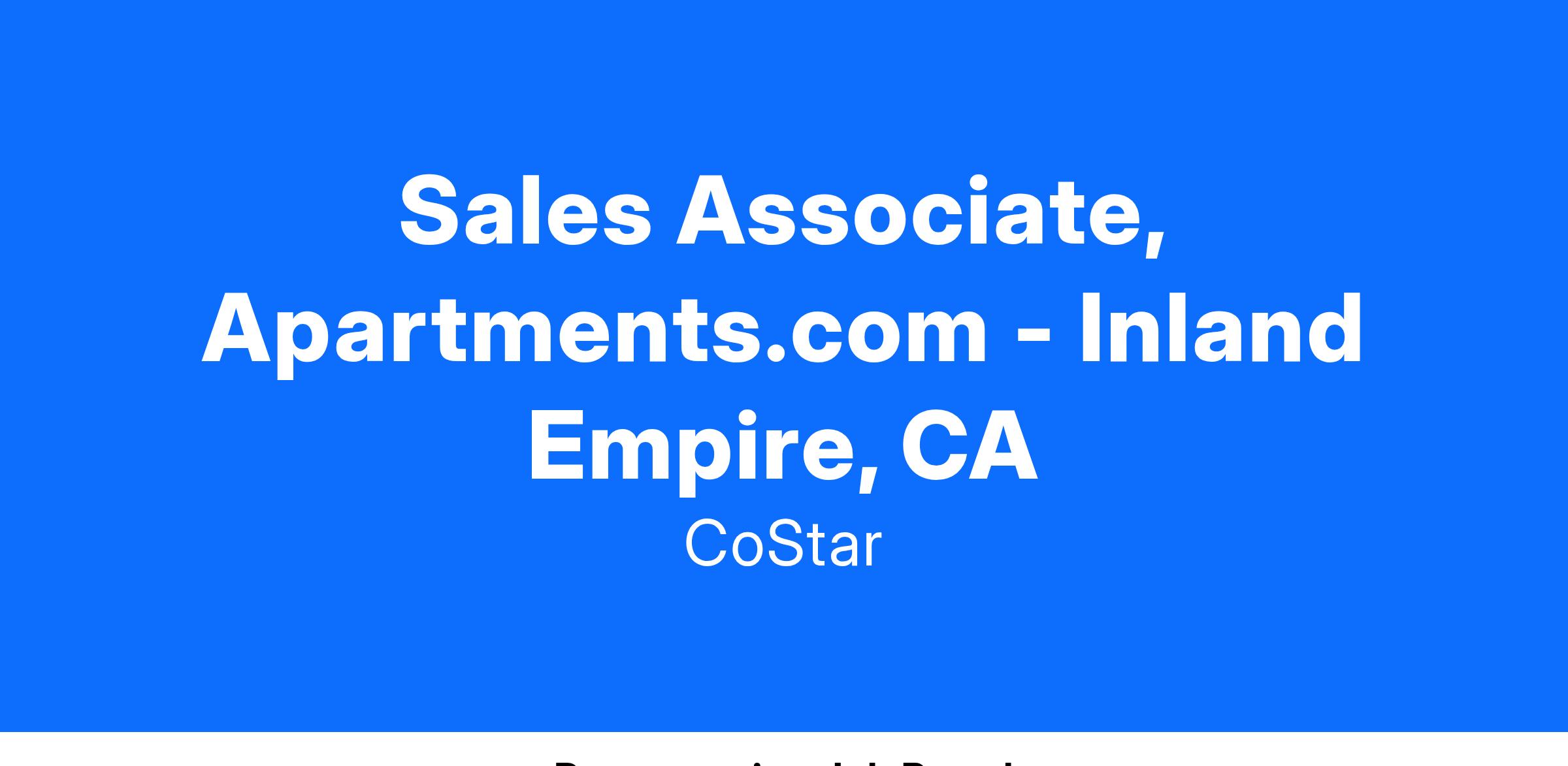 We are looking for passionate sales professionals to build long-lasting, service-focused customer relationships. As an Apartments.com Sales Associate, you will be part of a dynamic team that operates as a strategic digital marketing partner to the Multifamily industry. The Apartments.com Sales team is the top sales team in the multi-family industry. As part of the team, you may be asked to participate in sales efforts with other residential products through CoStar Group, including Homes.com. Through engaging sales presentations and in-person client visits, you will advise and sell clients marketing solutions that enable them to achieve their goals. You will also grow revenue by prospecting new clients and growing existing accounts by identifying and developing new marketing solutions for their portfolios.