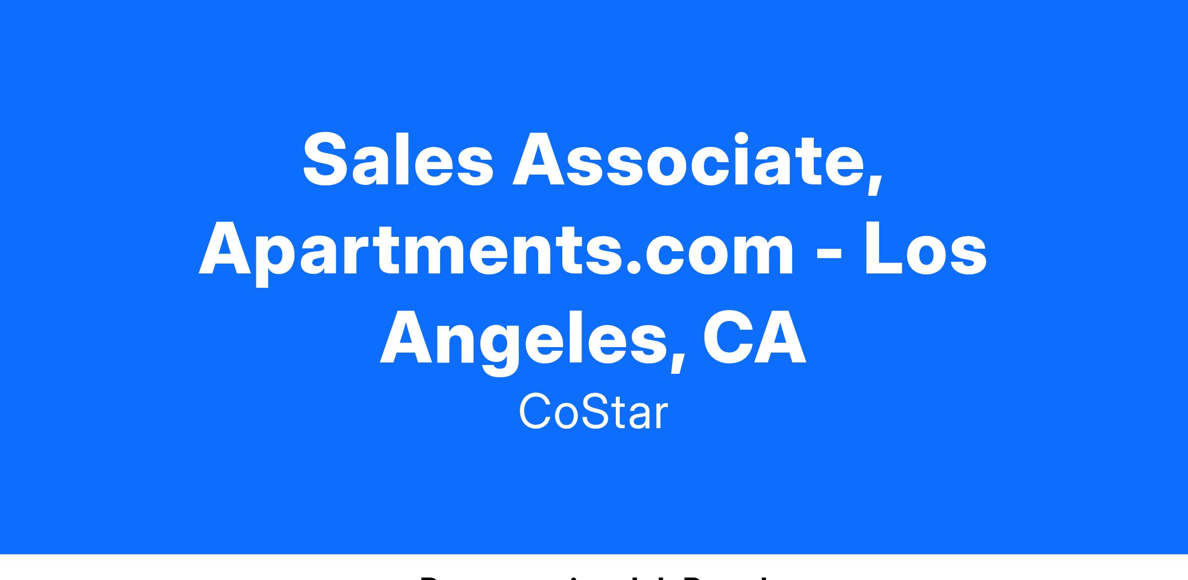We are looking for passionate sales professionals to build long-lasting, service-focused customer relationships. As an Apartments.com Sales Associate, you will join a dynamic team that operates as a strategic digital marketing partner to the multifamily industry. The Apartments.com Sales team is the top sales team in the multi-family industry. As part of the team, you may be asked to participate in sales efforts with other residential products through CoStar Group, including Homes.com. Through engaging sales presentations and in-person client visits, you will advise and sell clients marketing solutions that enable them to achieve their goals. You will also grow revenue by prospecting new clients and growing existing accounts by identifying and developing new marketing solutions for their portfolios.