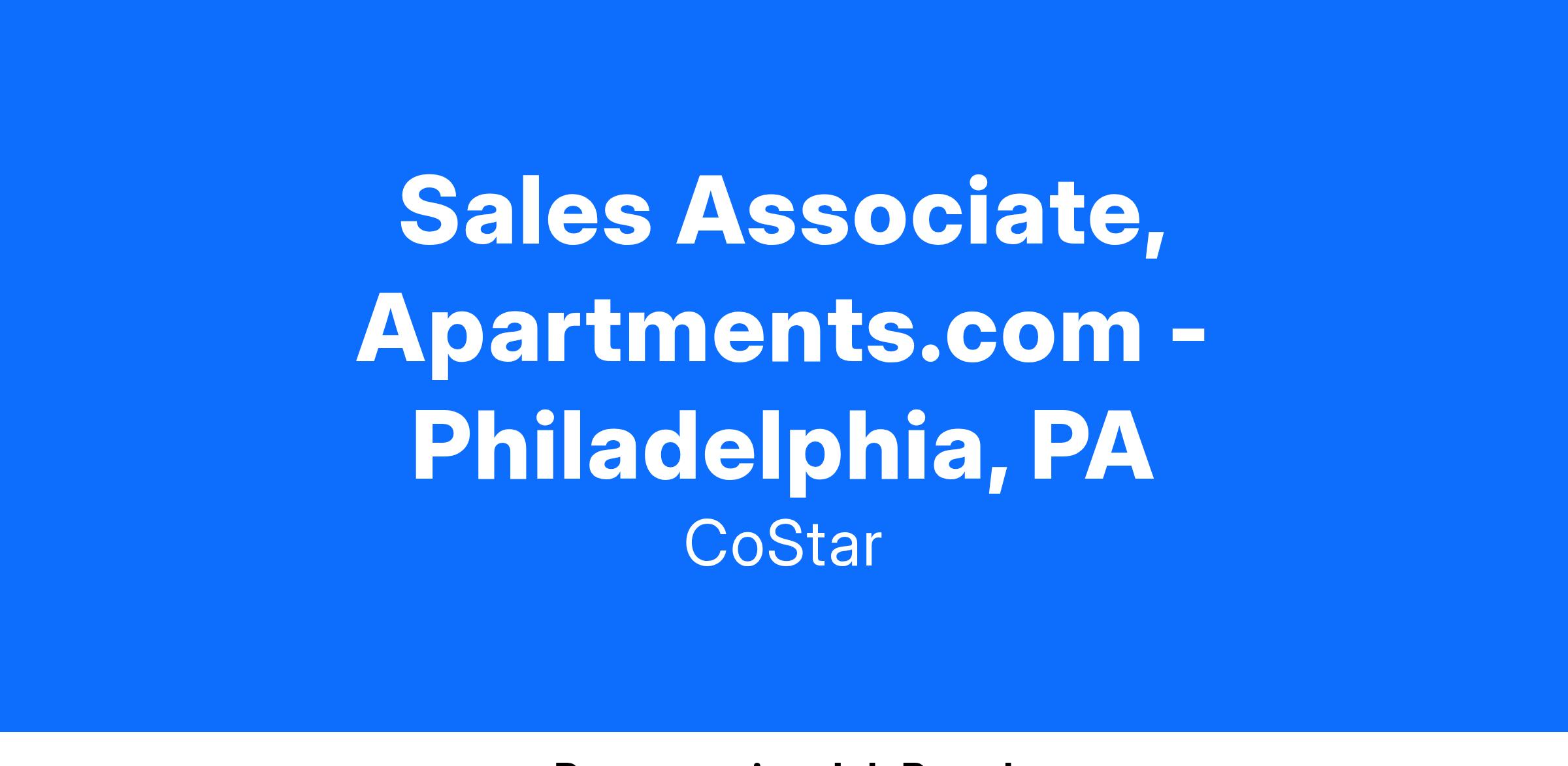 CoStar Group is an Equal Employment Opportunity Employer; we maintain a drug-free workplace and perform pre-employment substance abuse testing