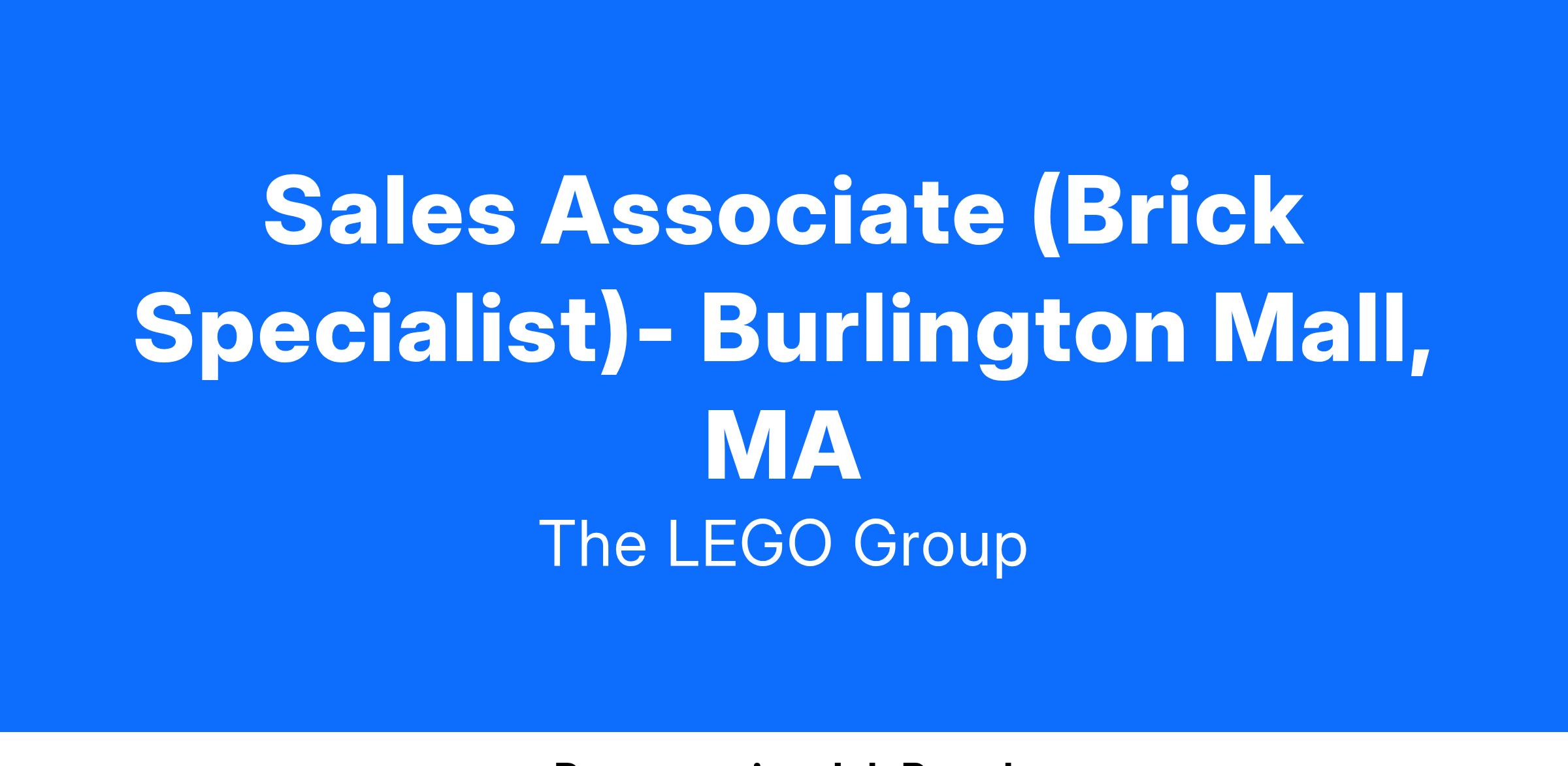 We want you to join the LEGO Brand Retail team! If you are confident that you have what it takes to succeed in this seasonal part-time role, use the APPLY NOW button above or below. BRINGING IT TO LIFE “The reason LEGO® exists is because of what they are doing for children around the globe. Everyone in the company, at all levels, feels privileged to be part of a company with such an inspiring vision”. VP of Operations in Americas & Pacific Additional Details We conduct drug screening as a part of our drug free workplace policy and in support of our commitment to the health and safety of our employees. We are an equal opportunity employer and all qualified applicants will receive consideration for employment without regard to race, color, religion, sex, national origin, disability status, protected veteran status, or any other characteristic protected by law. Online Application Accessibility Statement; which is intended for those with disabilities - LEGO systems endeavors to make www.LEGO.com/jobs accessible to any and all users. If you would like to contact us regarding the accessibility of our web site or need assistance completing the application process, please contact the HR Service Desk at 860-763-7777, Option 4 (for TTY, dial 711) or RS_US@LEGO.com. Please note, these communication channels should be used for those having difficulty accessing our on-line channels, not to inquire about job opportunities.