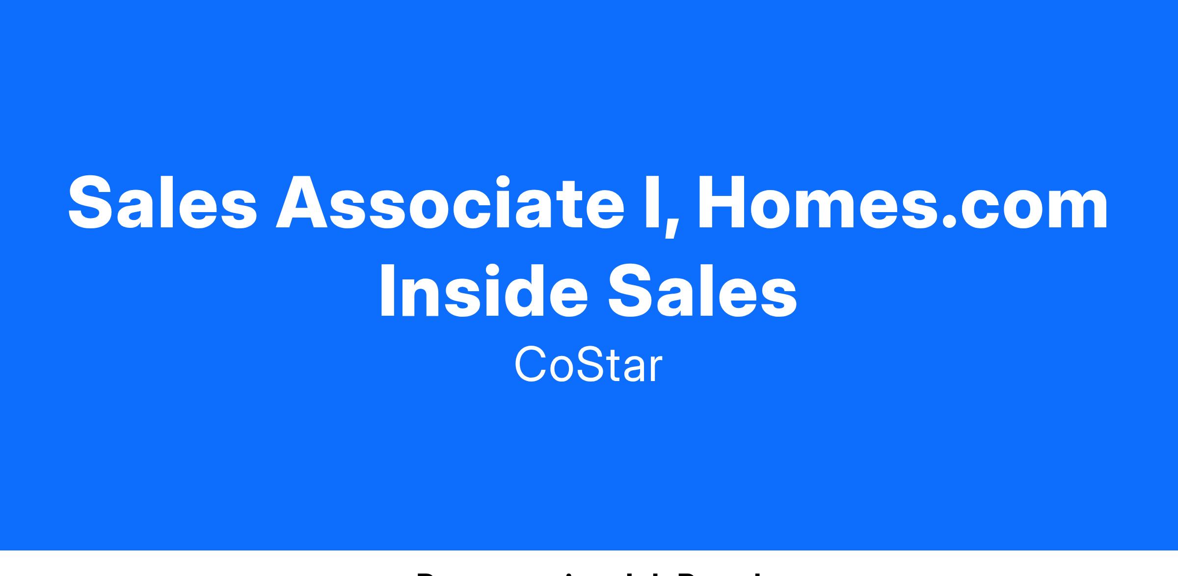 CoStar Group is an Equal Employment Opportunity Employer; we maintain a drug-free workplace and perform pre-employment substance abuse testing