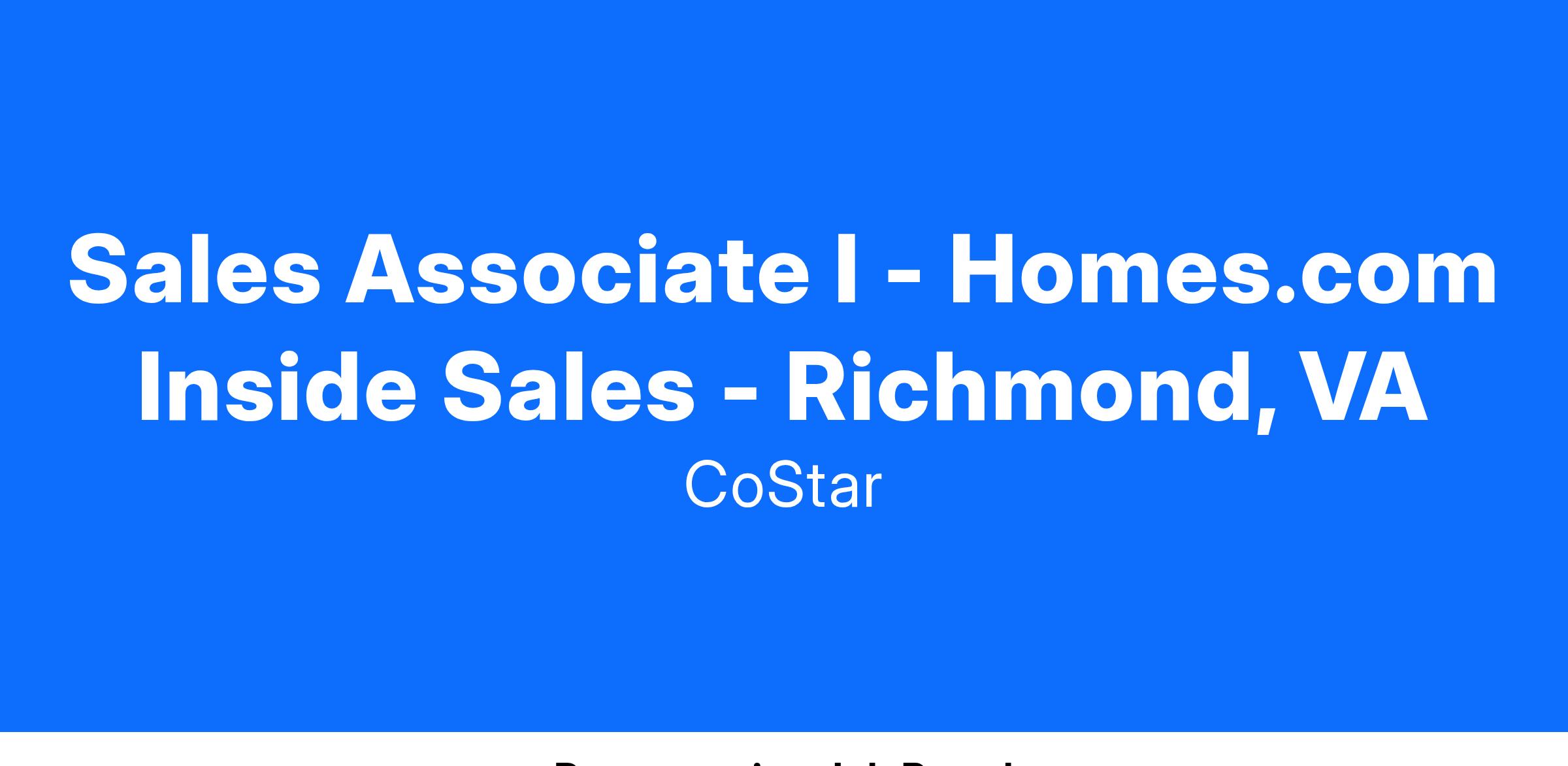 CoStar Group is an Equal Employment Opportunity Employer; we maintain a drug-free workplace and perform pre-employment substance abuse testing