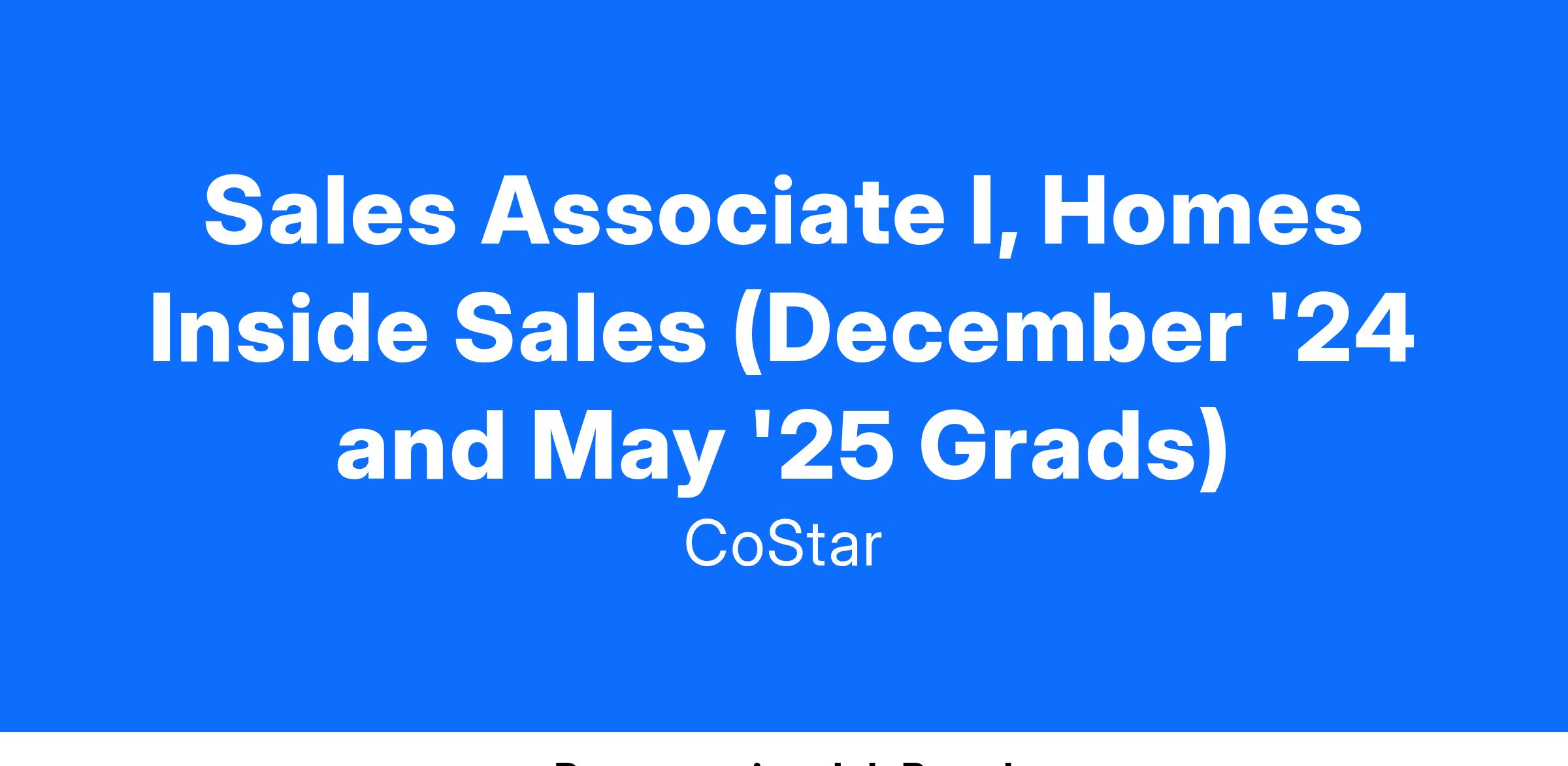 Sales Associate I, Homes Inside Sales (December 2024 & May 2025 Grads)