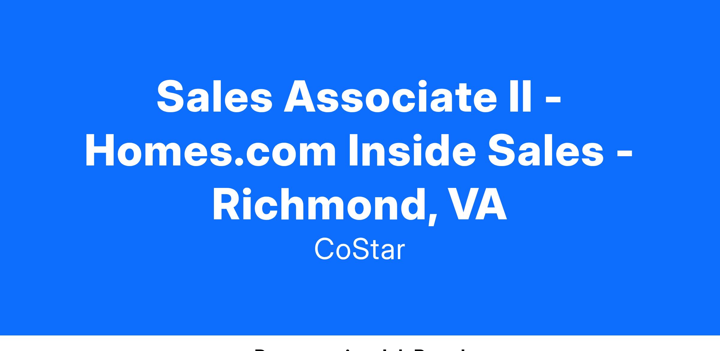 CoStar Group is an Equal Employment Opportunity Employer; we maintain a drug-free workplace and perform pre-employment substance abuse testing